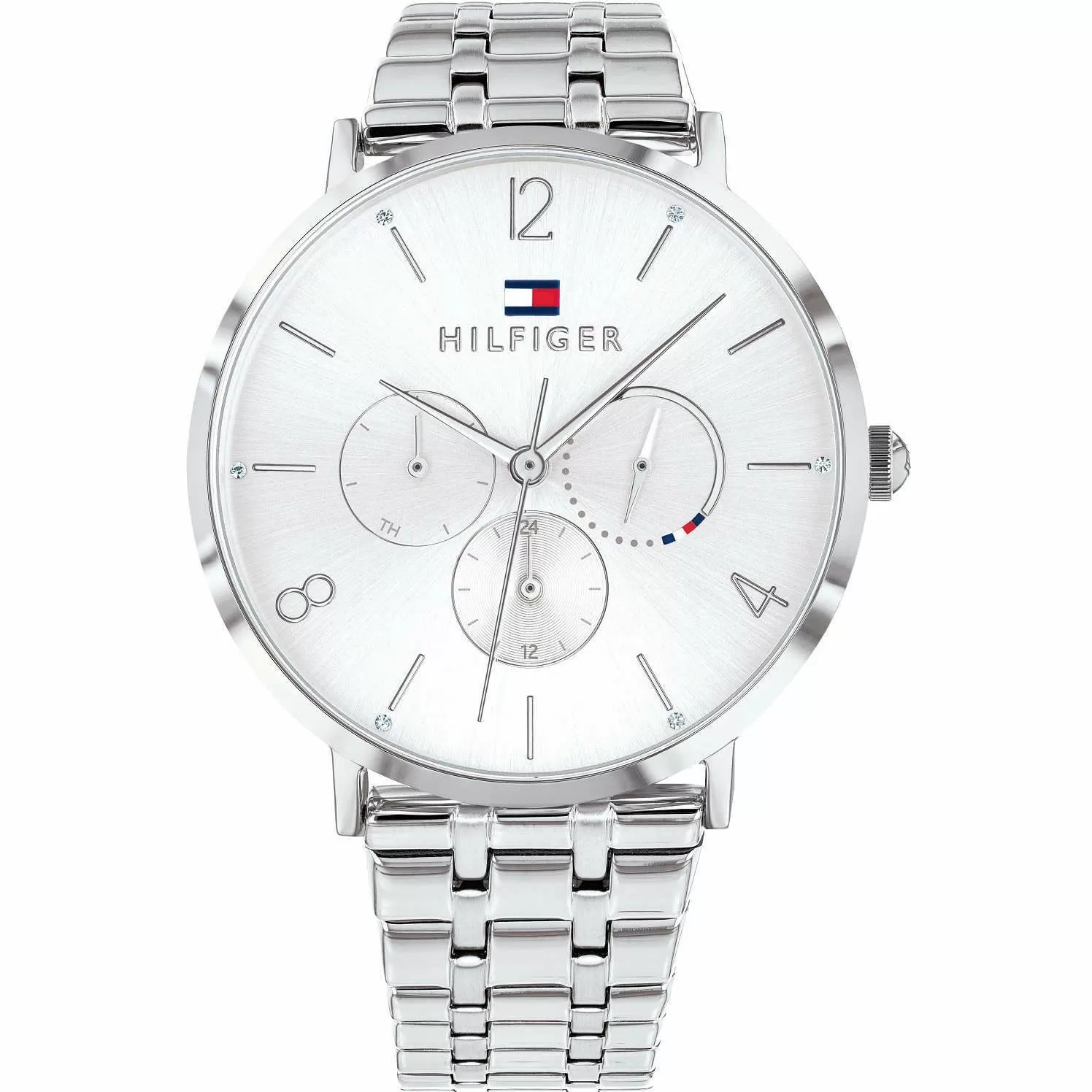 Damski zegarek Tommy Hilifger z bransoletką w srebrnym kolorze i multidatownikiem 1782031 z kolekcji Jenna