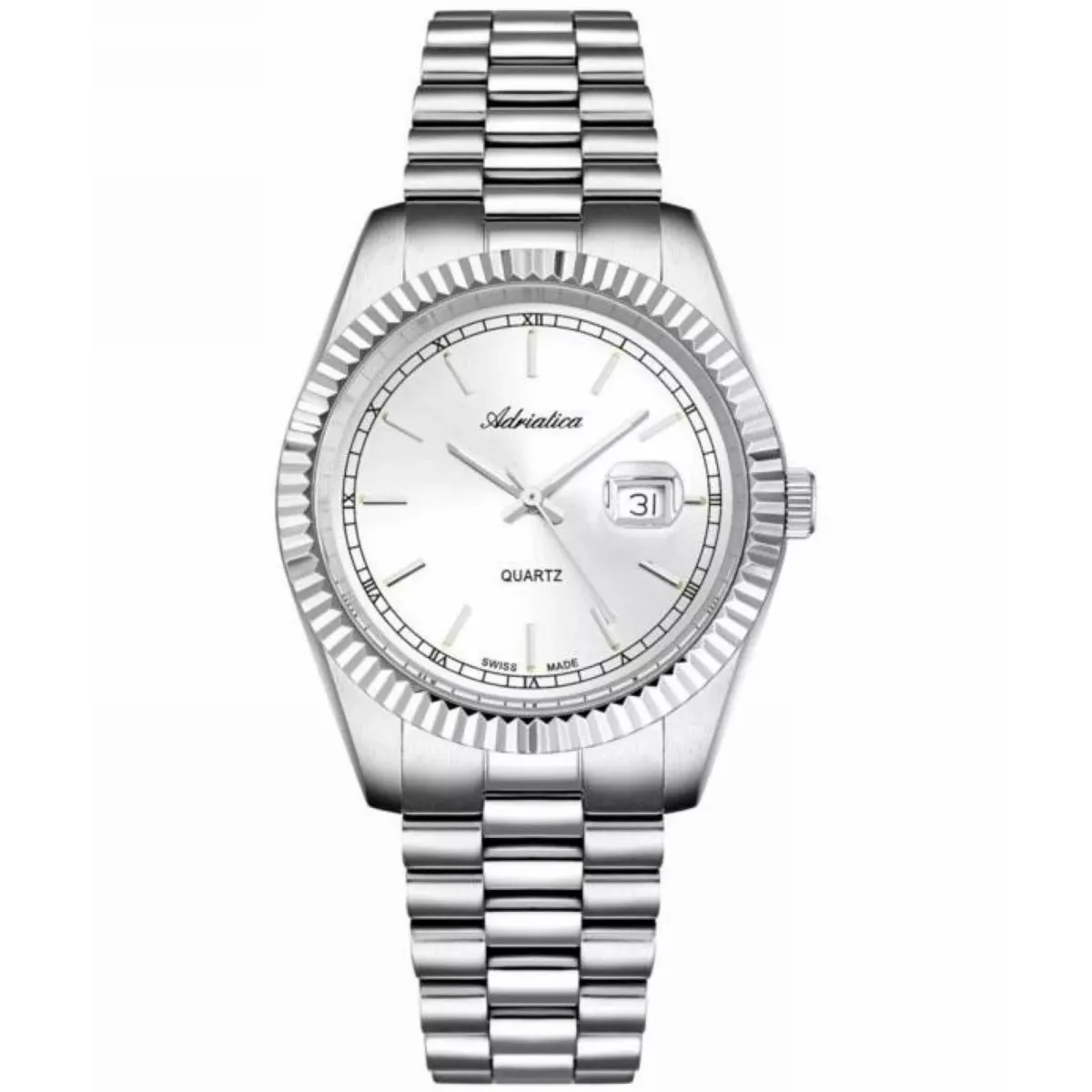 Elegancki damski zegarek Adriatica A3090.5113QXL ze srebrną kopertą i srebrną tarczą, wyposażony w mechanizm Ronda 785 Swiss Made. Bransoleta ze stali szlachetnej, datownik z lupką oraz luminescencyjne wskazówki zapewniają funkcjonalność i styl. Idealny do codziennego noszenia i na wyjątkowe okazje.