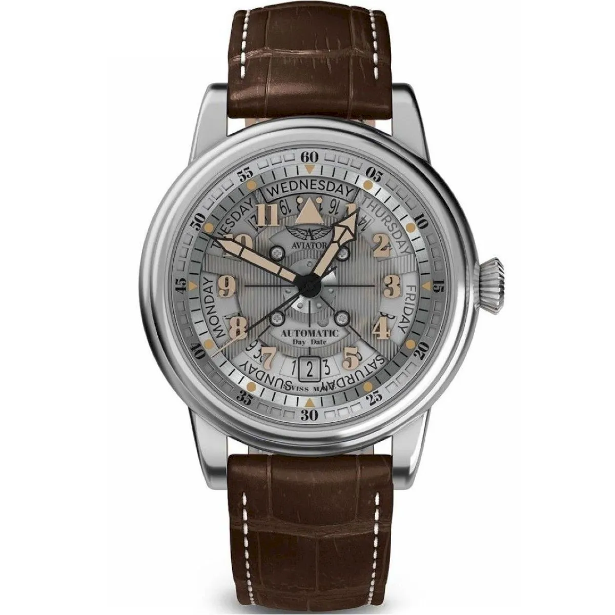 Każdy model tej szwajcarskiej marki inspirowany jest awiacją oraz stylem życia pilotów. Wszystkie zegarki Aviator nie tylko zostały zaprojektowane we współpracy z pilotami ale także są sygnowane lotniczymi akcentami w postaci przykładowo grawerunków, designu czy nawet charakterystycznego loga marki. Koperta wykonana jest z wysokiej jakości stali szlachetnej, odpornej na korozję. Tarczę chroni szafirowe szkło, które jest wyjątkowo odporne na zarysowania. Pasek skórzany zapewnia trwałość i komfort noszenia. Tarcza kalendarza o bardzo eleganckim wyglądzie, dopasowana do czcionki na tarczy i koloru, zapewniają wyrafinowane i wygodne wrażenia podczas realizacji twojego planu dnia.