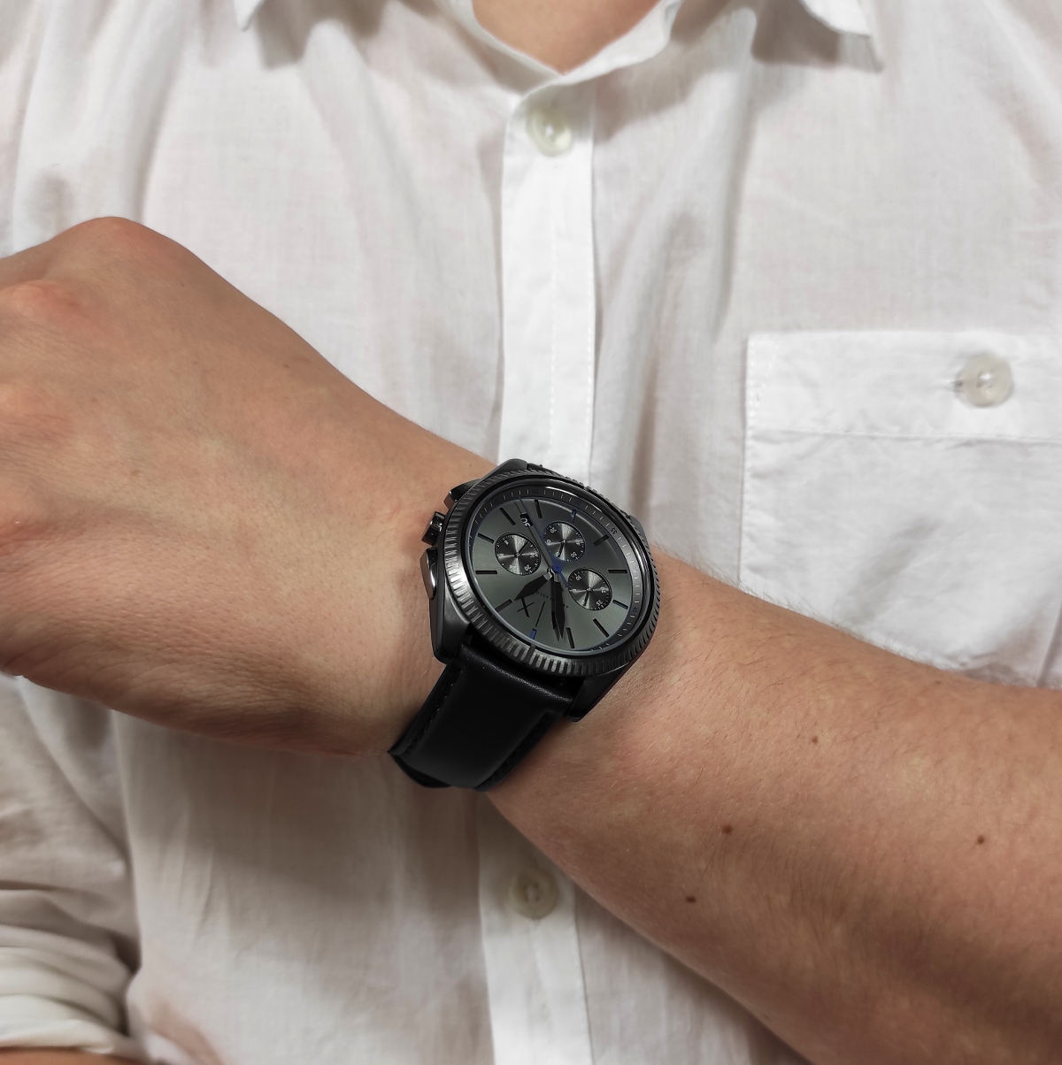 Zegarek Armani Exchange AX2855 zasilany jest przez mechanizm kwarcowy, czyli na baterię. Prócz wskazania godziny oferuje on funkcję datownika, w dyskretnym okienku na wysokości godziny 4:30 oraz chronografu, czyli analogowego stopera. Posiada on wodoszczelność na poziomie 5ATM, co oznacza, że można z nim wejść przykładowo pod prysznic, ale nie zaleca się nurkowania czy skoków do wody. Jest to model, który znakomicie prezentuje się na każdym męskim nadgarstku, dzięki swojej solidnej kopercie i czarno-złotej kolorystyce.