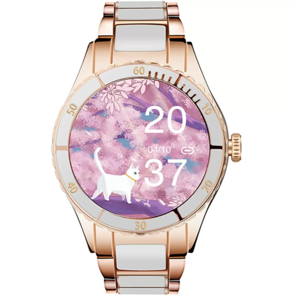Nowoczesny smartwatch damski Rubicon RNCE82 SMARUB132 z białymi elementami, z masywnym bezelem wewnątrz którego osadzono wyświetlacz z wrażliwym dotykiem, którego użytkowanie jest niezwykle intuicyjne, a wbudowany mikrofon i głośnik umożliwiają prowadzenie rozmów. Zegarek Rubicon RNCE82 to nowa propozycja uwielbianego producenta Rubicon którego produkty na co dzień poprawiają życie ludzi na Całym Świecie. Okrągła obudowa o szerokości 35 mm doskonale będzie się prezentowała na damskim nadgarstku, zapewniając łatwy dostęp do wszystkich funkcji dzięki temu, że posiada dotykowy wyświetlacz. Wygoda użytkowania na pewno poprawi zadowolenie z treningu, a wskazania czujników pulsu, ciśnienia i natlenienia pozwolą poprawić jego jakość. Zegarek Rubicon RNCE82 biały należy do kolekcji smartwatchy, czyli inteligentnych zegarków naręcznych, które zdecydowanie wykraczają poza funkcję wskazywania czasu, można rzec, że to zaawansowane technologicznie urządzenie, o rozbudowanych opcjach, zamkniętych w formie zegarka. Na pierwszy rzut oka to zwykły sportowy zegarek z wyświetlaczem – okrągła koperta, elegancka bransoleta ze stali wykończona tworzywem, natomiast posiada funkcje, które do niedawna mógł mieć jedynie telefon, lub urzadzenia pomiarowe.
