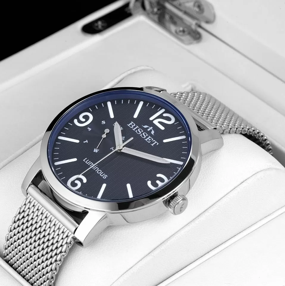 Zegarki Bisset różnią się między sobą też praktycznością. W większości modeli zastosowano między innymi datownik oraz multidatownik, który informuje użytkownika o konkretnej dacie (dniu miesiąca) i z pewnością stanowi jeden z najbardziej funkcjonalnych dodatków.