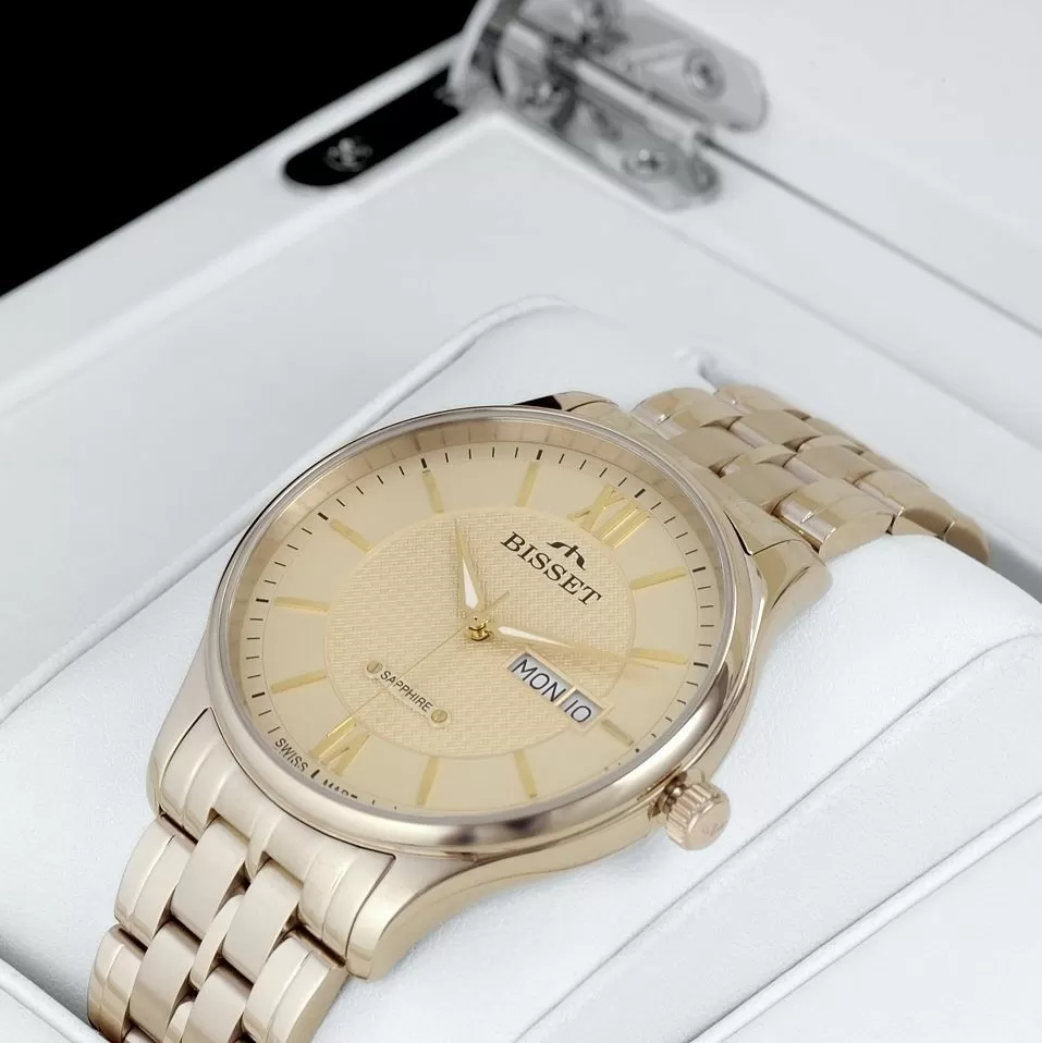 Zegarki Bisset w wersji eleganckiej stanowią trzon sprzedaży tej marki od samego początku jej istnienia. Firma doskonale zna cechy pożądane przez wszystkich wielbicieli męskich zegarków Bisset o klasycznej stylistyce. Modele z tej kategorii mają przeważnie złotą bądź srebrną kopertę z minimalistyczną tarczą, pozbawioną wszelkich zbędnych dodatków.