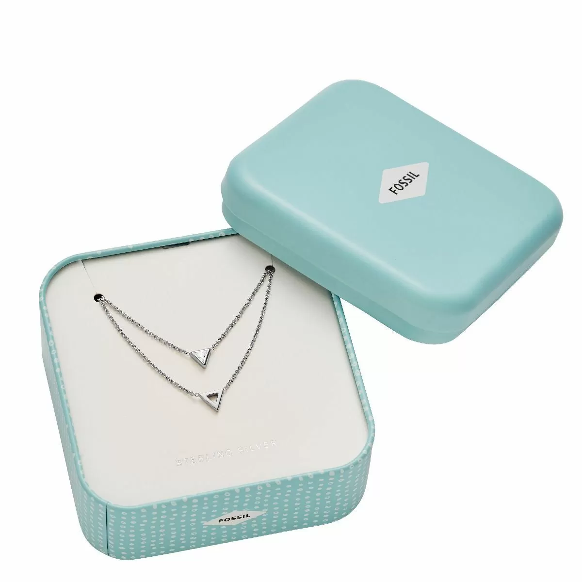 Naszyjnik Fossil JFS00447040 to wyjątkowy dodatek, który podkreśli styl każdej Pani. Biżuteria damska Fossil zaprojektowana została w oparciu o najbardziej aktualne trendy, a kolorystyka utrzymana w srebrnym odcieniu rewelacyjnie pasuje na każdy sezon. Komfortowe użytkowanie i trwałość zapewnia wykonanie ze srebra próby 925. Całość prezentuje się niezwykle modnie, dzięki designerskiemu wzornictwu. Prezentowany naszyjnik damski Fossil JFS00447040 składa się z dwóch łańcuszków różnej długości, na których przewieszono trójkątne zawieszki.