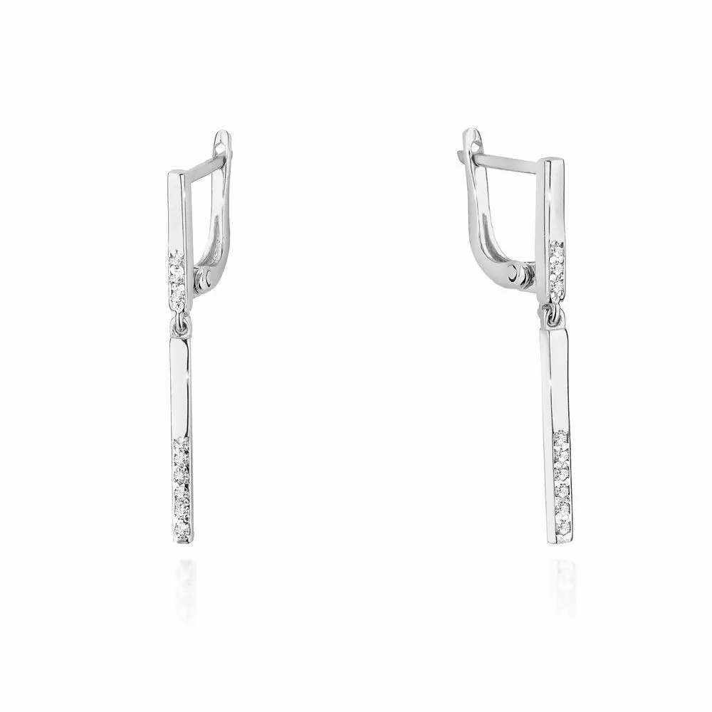 Złote kolczyki wiszące z diamentami • Białe Złoto 585 Brylanty 0.08ct