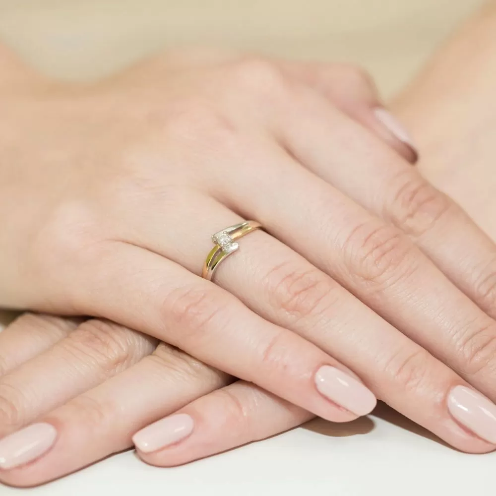Piękny pierścionek ze złota z brylantem. Jest to elegancki wzór, który prezentuje się bardzo stylowo i w wyrafinowany sposób podkreśla charater swojej właścicielki.