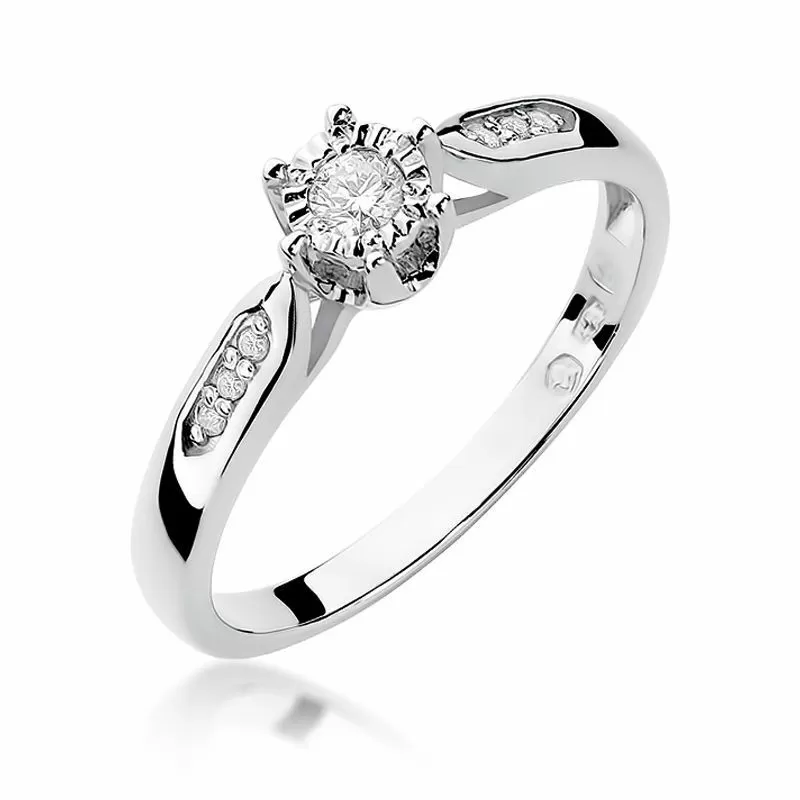Biżuteria SAXO 14K Pierścionek z brylantami 0,11ct W-328 Białe Złoto