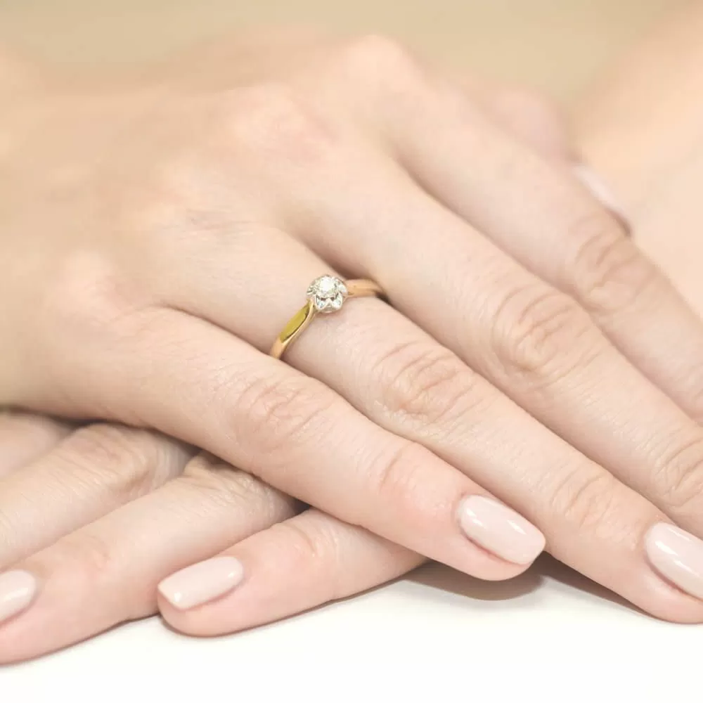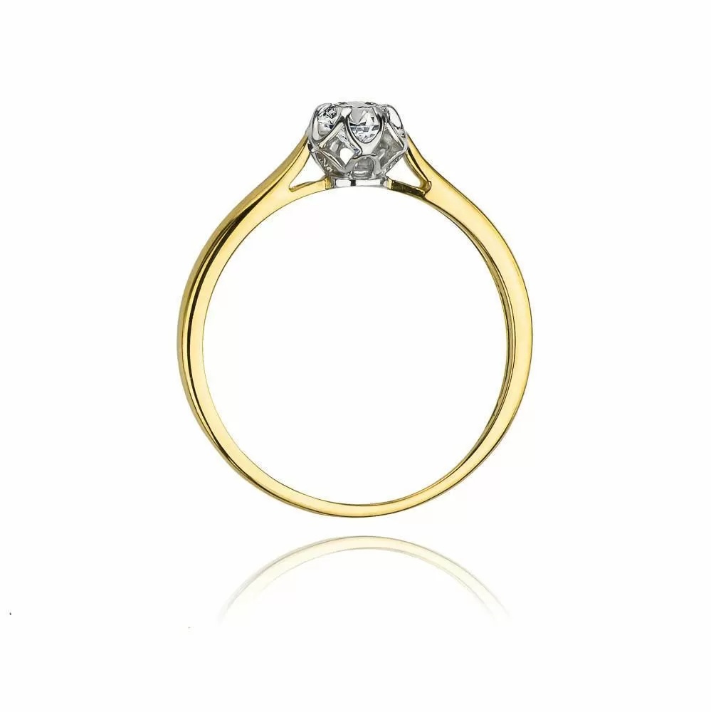 Piękny pierścionek ze złota z brylantem. Jest to ponadczasowy klasyczny wzór, który prezentuje się bardzo elegancko i subtelnie podkreśla charater swojej właścicielki.