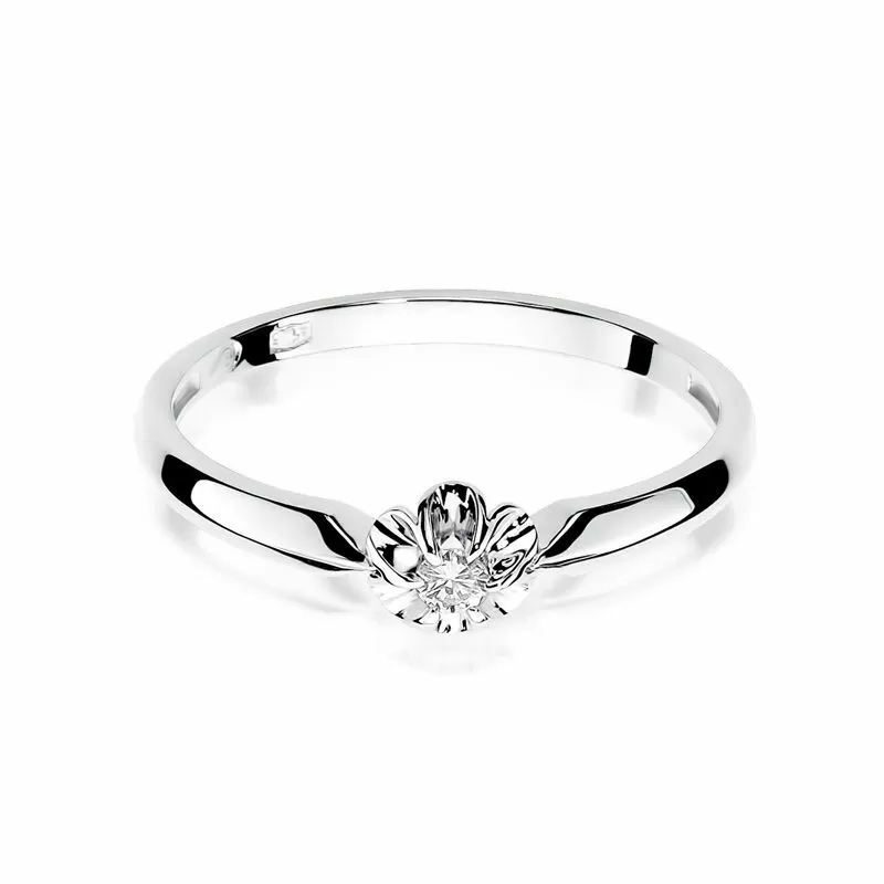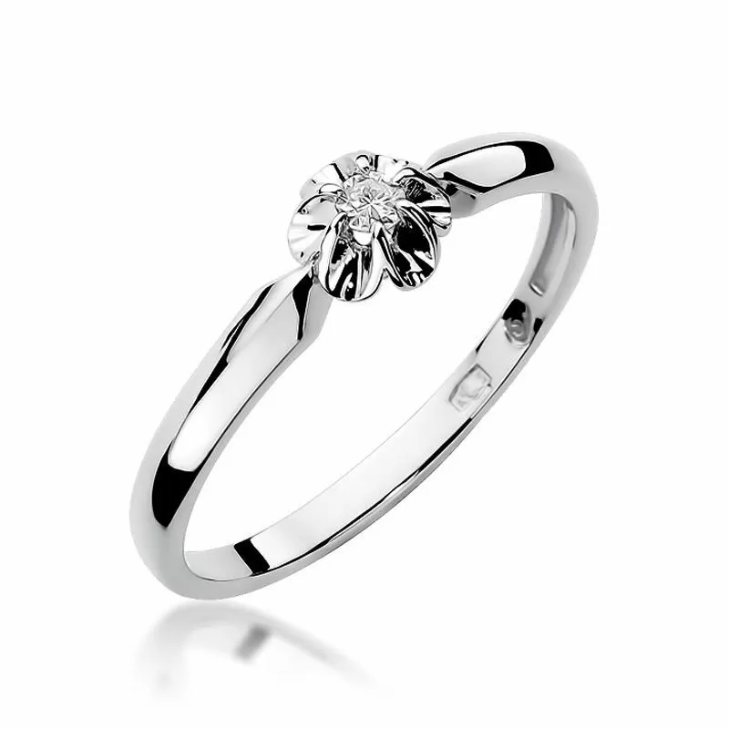 Biżuteria SAXO 14K Pierścionek z brylantem 0,04ct W-187 Białe Złoto