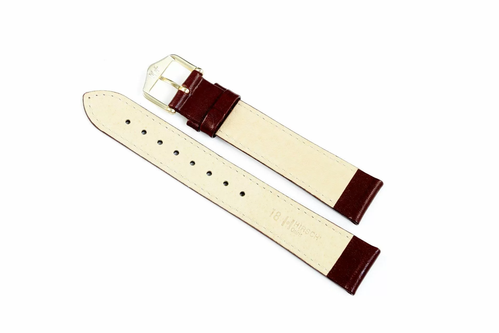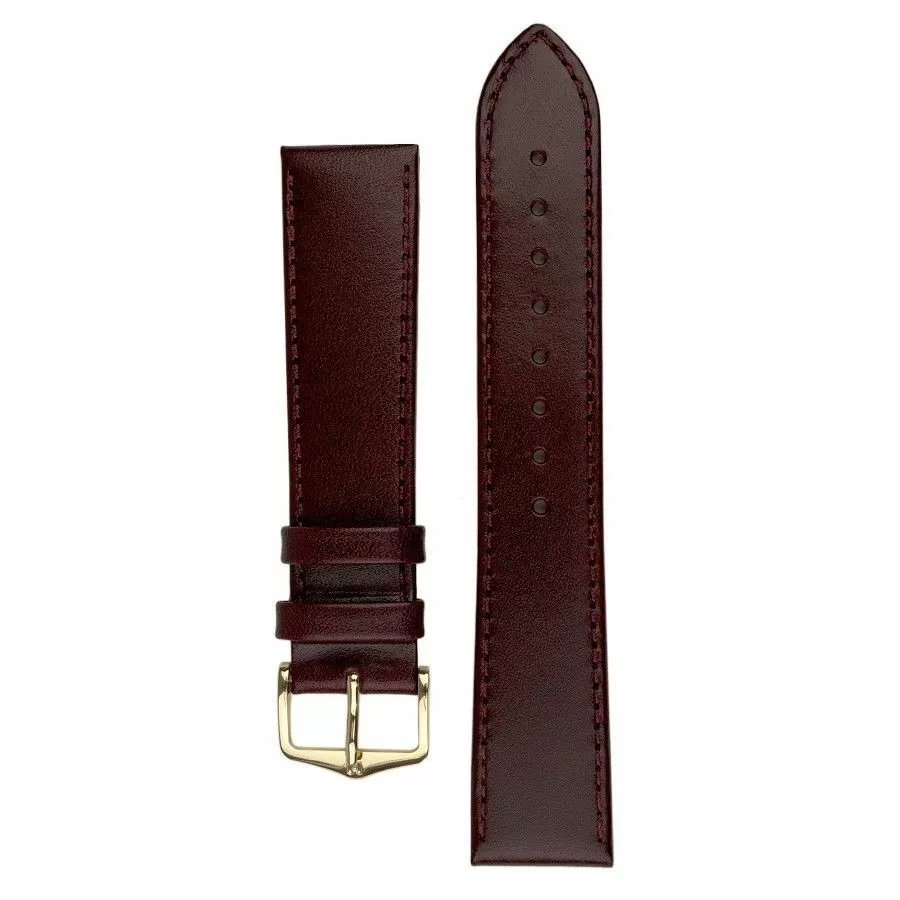 Klasyczny płaski bordowy pasek skórzany z lini HIRSCH Soft lining leather przekonuje dyskretnym wyglądem i szczególnym połyskiem jaki zapewniają mistrzowie w swoim fachu z firmy HirschWykonany ręcznie  z drobnoporowatej stabilnej wymiarowo, ale elastycznej skóry o szczególnie gęstym ziarnie i jedwabistym połysku. Rozmiar 18 mm, klamerka w kolorze złotym , ceniona austriacka marka Hirsch. Osiris jako model należy do rodziny produktów Struktured leather . Przeszyty nicią w kolorze paska jest idealny do każdego zegarka do codziennego użytku.