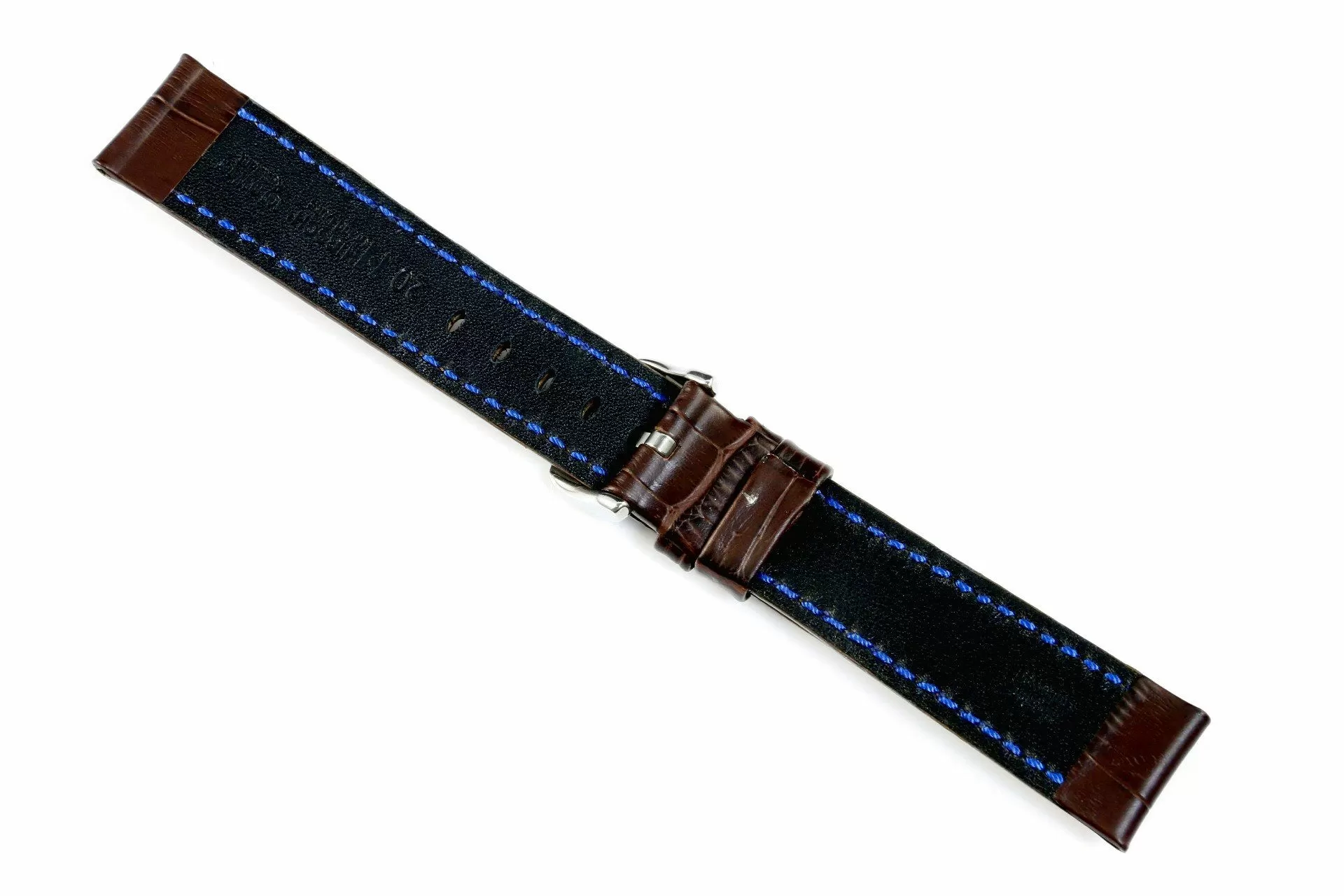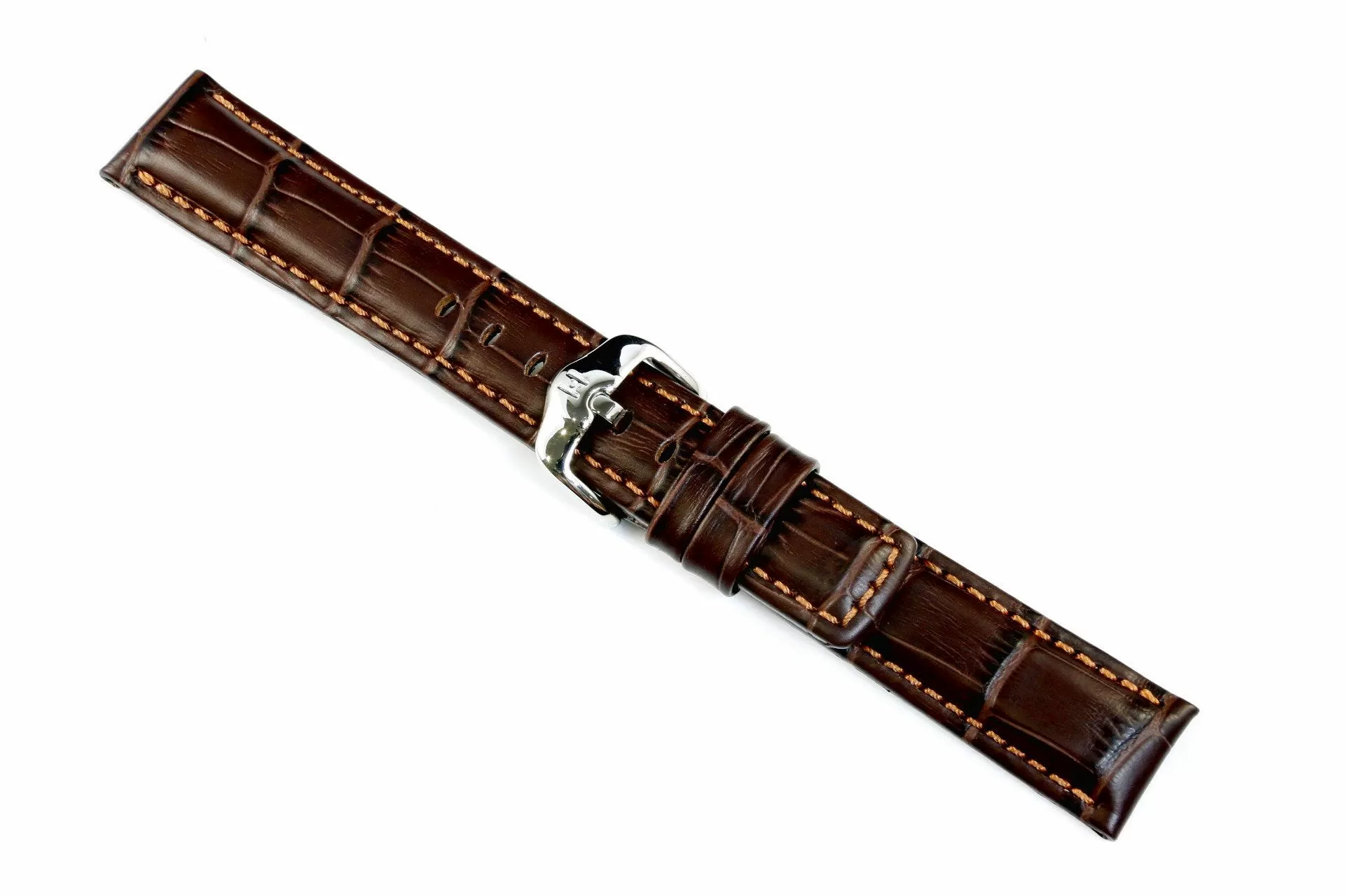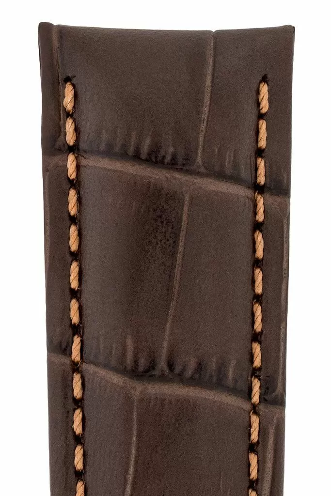 Mocny i dynamiczny brązowy pasek skórzany z lini HIRSCH Diving Glove lining leather emanuje sportowym charakterem i wykonany jest z najlepszej włoskiej  skóry cielęcej . Naturalnie wyglądającej półbłyszczącej w dwóch tonach powierzchni ze specjalnym przetłoczeniem oddającym rzeczywistą strukturę skóry Aligatora z Luisiany w prostokąne łuski ,wykonany ręcznie. Rozmiar 22 mm, klamerka w kolorze srebrnym , ceniona austriacka marka Hirsch. Grand Duke jako model  należy do rodziny produktów Exotic embosed leather i Hirsch 100 m Water-Resistant co umożliwia montaż do wodoszczelnych zegarków z ktorymi można pływać a nawet nurkować. Przeszyty nicią w kolorze paska lub kontrastowym dla podkreślenia silnego charakteru.