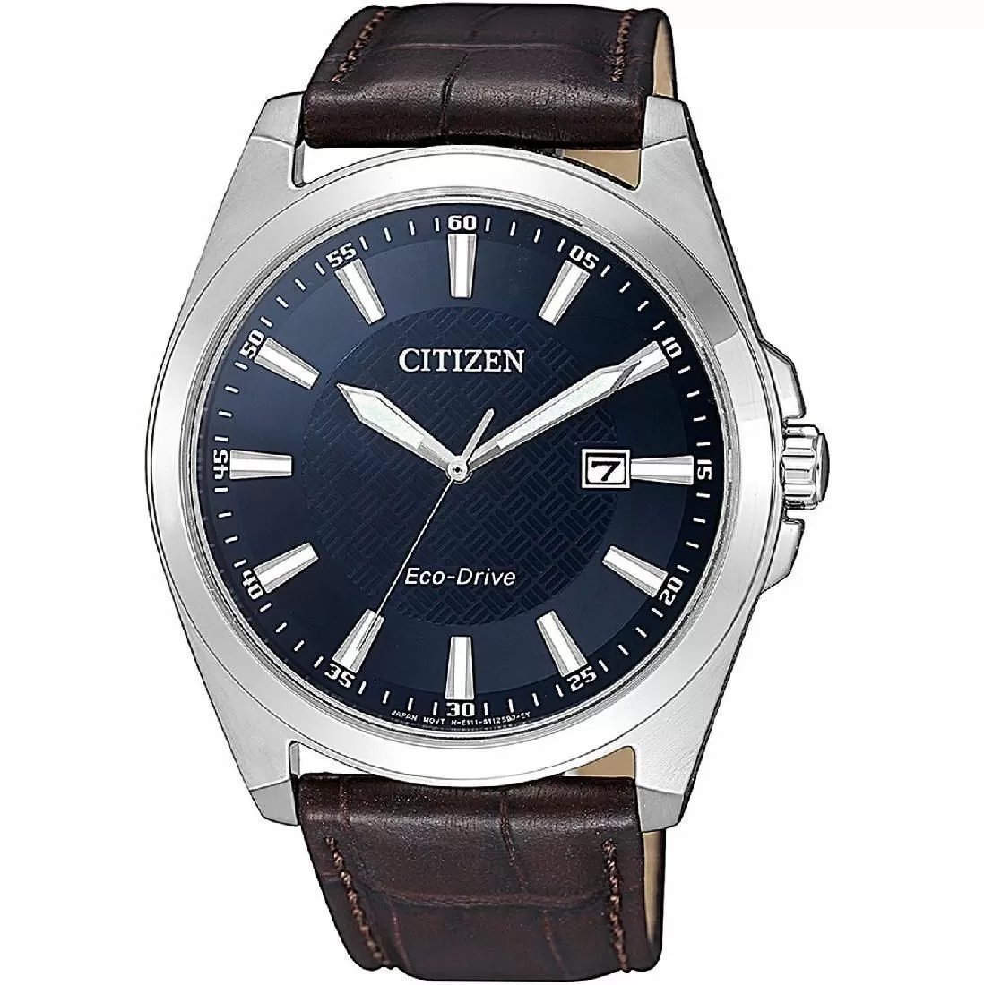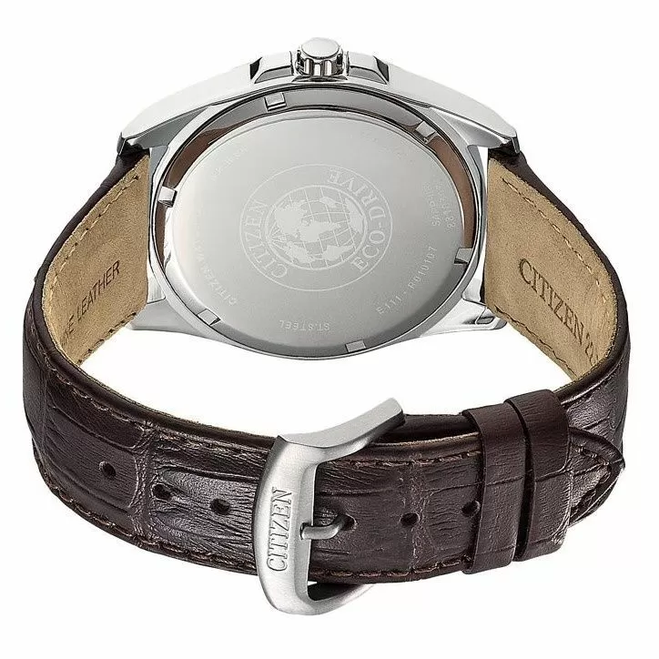 Zegarek Citizen BM7108-22L to klasyczny męski model z granatową tarczą w ponadczasowym designie, o srebrnej kolorystyce, ze skórzanym brązowym paskiem, który posiada funkcję datownika. Ponadczasowy charakter zegarka Citizen Classic BM7108-22L przejawia się w praktycznej funkcjonalności, natomiast elegancki wygląd czasomierza bez wątpienia doda stylu i szyku każdej kreacji. Koperta została wykonana ze stali szlachetnej, o srebrnym wykończeniu, co doskonale współgra z ciemną tarczą, na której za pomocą indeksów oznakowane zostały pełne godziny. Do niej dopasowano prosty, ciemnobrązowy pasek ze skóry naturalnej o eleganckiej teksturze. Wewnątrz koperty został osadzony kwarcowy mechanizm, który napędzany jest przez nowoczesny system Eco Drive, który polega na absorbowaniu promieni światła przez mikrokomórkę, która przetwarza je w energię elektryczną potrafiącą zasilać czasomierz. Z tarczy poza wskazaniem aktualnej godziny można również odczytać jaki jest bieżący dzień miesiąca, kórego wskazanie zilustrowane zostało w okienku tuż obok miejsca wskazania godziny trzeciej. Kopertę zegarka Citizen BM7108-22L zamyka szkiełko mineralne, bardzo dobrze sprawdzające się w codziennym użytkowaniu. Model ten posiada 10ATM wodoszczelności.
