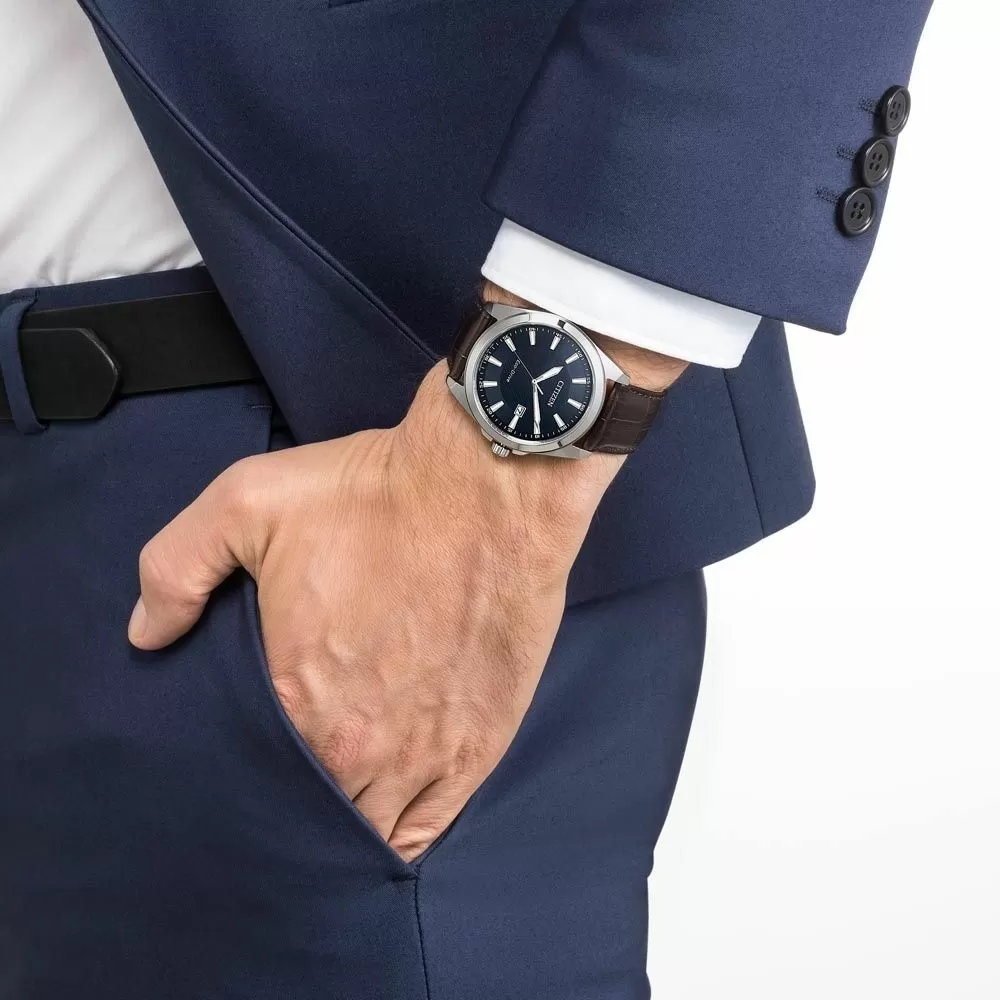 Wszystkie zegarki męskie Citizen Classic to modele z paskiem brązowym, ewentualnie czarnym (podobnie w wersjach przeznaczonych dla kobiet). Warto tutaj zaznaczyć, że barw jest więcej, czasem jeden pasek wyposażono w kilka odcieni dla urozmaicenia konstrukcji, to między innymi połączenie srebra z barwą piaskową – bardzo eleganckie Citizen zegarki!