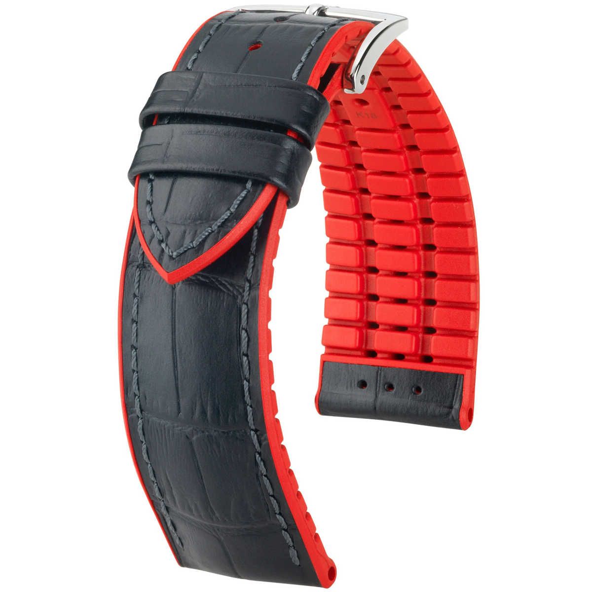 Czarno-czerwony pasek skórzany 20 mm HIRSCH Andy 0922028050-2-20 (L)