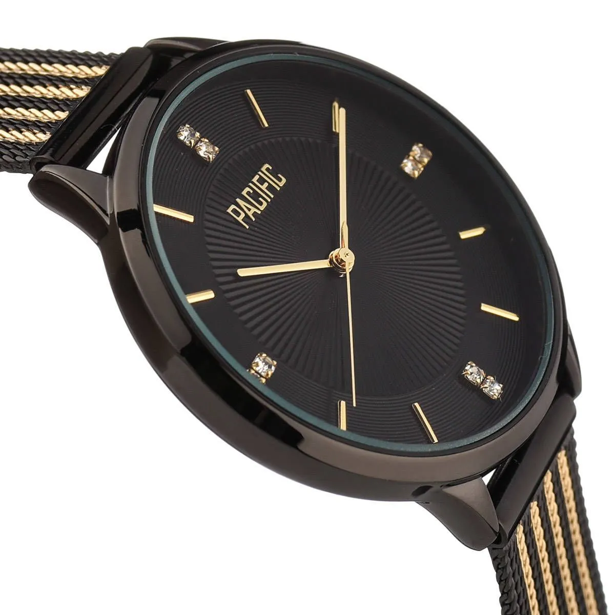 PACIFIC X6148-14 to niezwykle elegancki damski zegarek, utrzymany w czarnej kolorystyce, który sprawdzi się jako dodatek do każdej stylizacji. To tradycyjny model z czarną tarczą oraz bransoletką typu mesh. Ma elegancki charakter i czytelną tarczę oznakowaną indeksami. Co więcej, zegarek jest odporny na wodę, dzięki czemu nie trzeba martwić się przy kontakcie z wodą, przykładowo podczas mycia rąk. Zegarki Pacific to idealne połączenie wysokiej jakości wykonania, użytkowych funkcji i atrakcyjnej ceny.