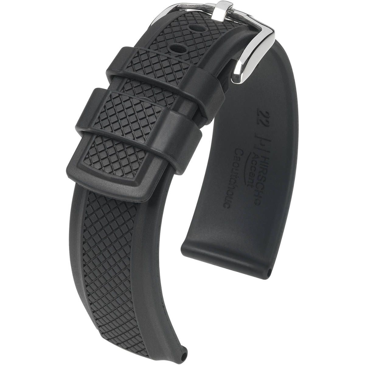 Czarny pasek kauczukowy 24 mm HIRSCH Accent 40478850-2-24 (L)