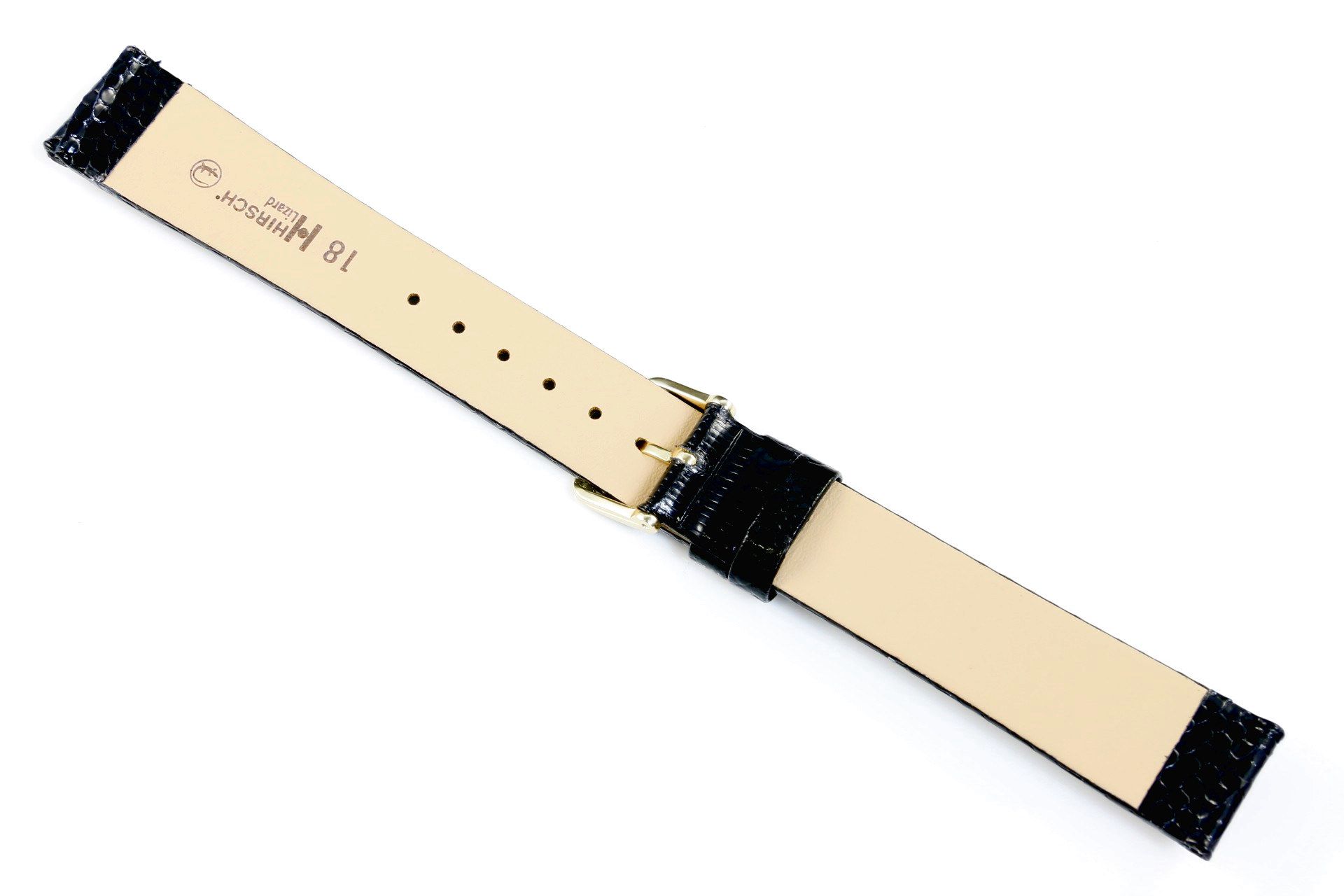 Luksusowy czarny pasek skórzany z lini HIRSCH Velvet Glove lining leather wykonany z pierwszorzędnej skóry jaszczurki o strukturze gęstej łuski , polerowanej ręcznie dla brylantowego połysku Rozmiar 10 mm, klamerka w kolorze złotym , ceniona austriacka marka Hirsch. Lizard jako model  należy do rodziny produktów Precious leather. Bezpretensjonalny ksztalt , luksusowy wyraz to główne cechy tego wyjątkowego płaskiego paska który został  wykonany ręcznie , Będzie pasował do każdego eleganckiego zegarka. Model wykonany jest z miękkiej skóry i rewelacyjnie sprawdzi się jako dodatek do zegarka na każdy dzień  jak i na specjalną okazję.