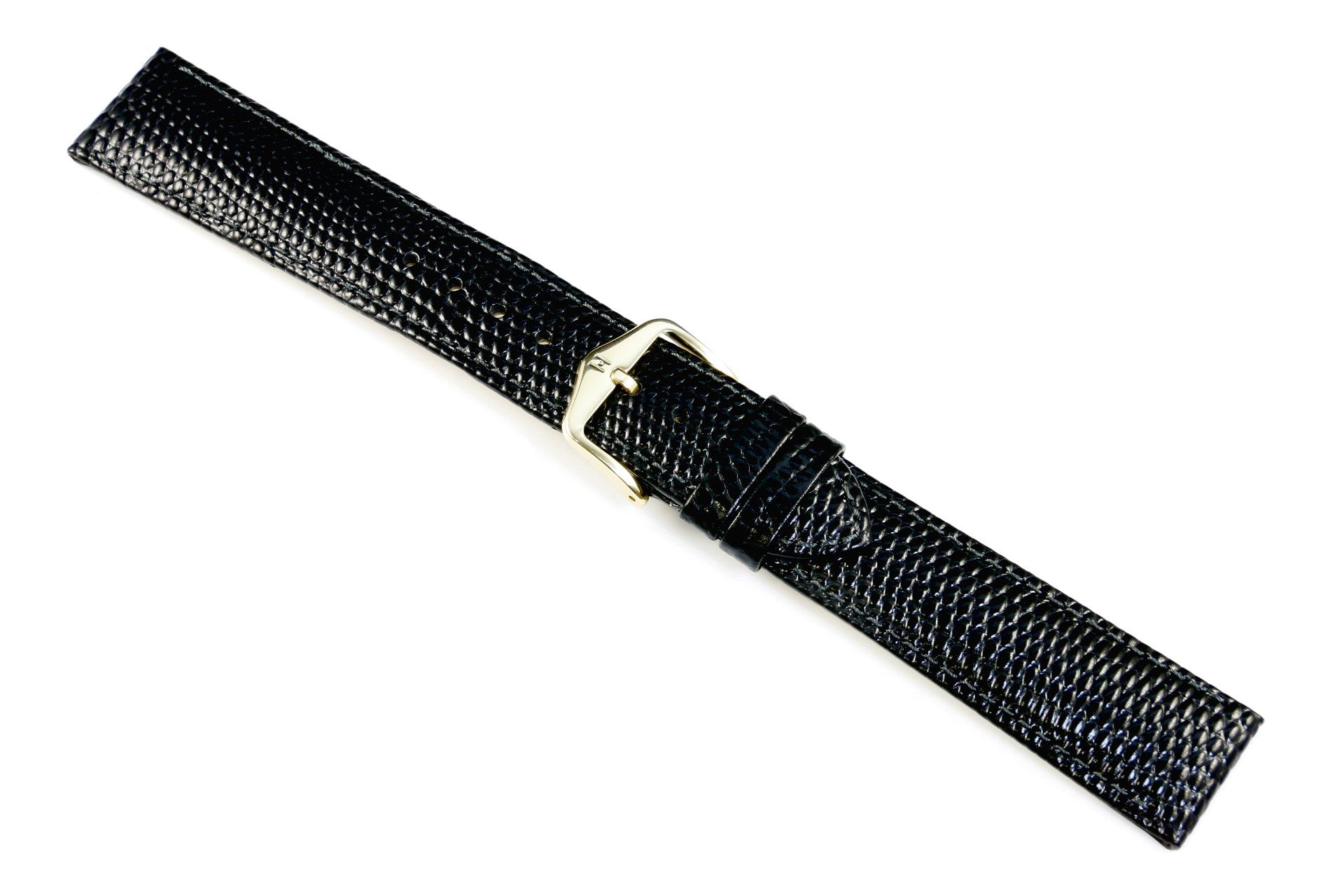 Klasyczny czarny pasek skórzany z lini HIRSCH Exotic embossed leather to ponadczasowo elegancki pasek któryjest świetnym akcesorium do klasycznych zegarków. Wykonany ręcznie z najlepszej skóry cielęcej  z jedwabistym połyskiem i naturalnie wyglądającymi tłoczeniami łuski jaszczurki w półmatowym dwutonowym wykończeniu. Rozmiar 14 mm, klamerka w kolorze srebrnym, ceniona austriacka marka Hirsch. Rainbow jako model należy do lini Hirsch softglove lining leatherDelikatne przeszycia w kolorze paska podkreślają elegancki charakter i dodają trwałości.