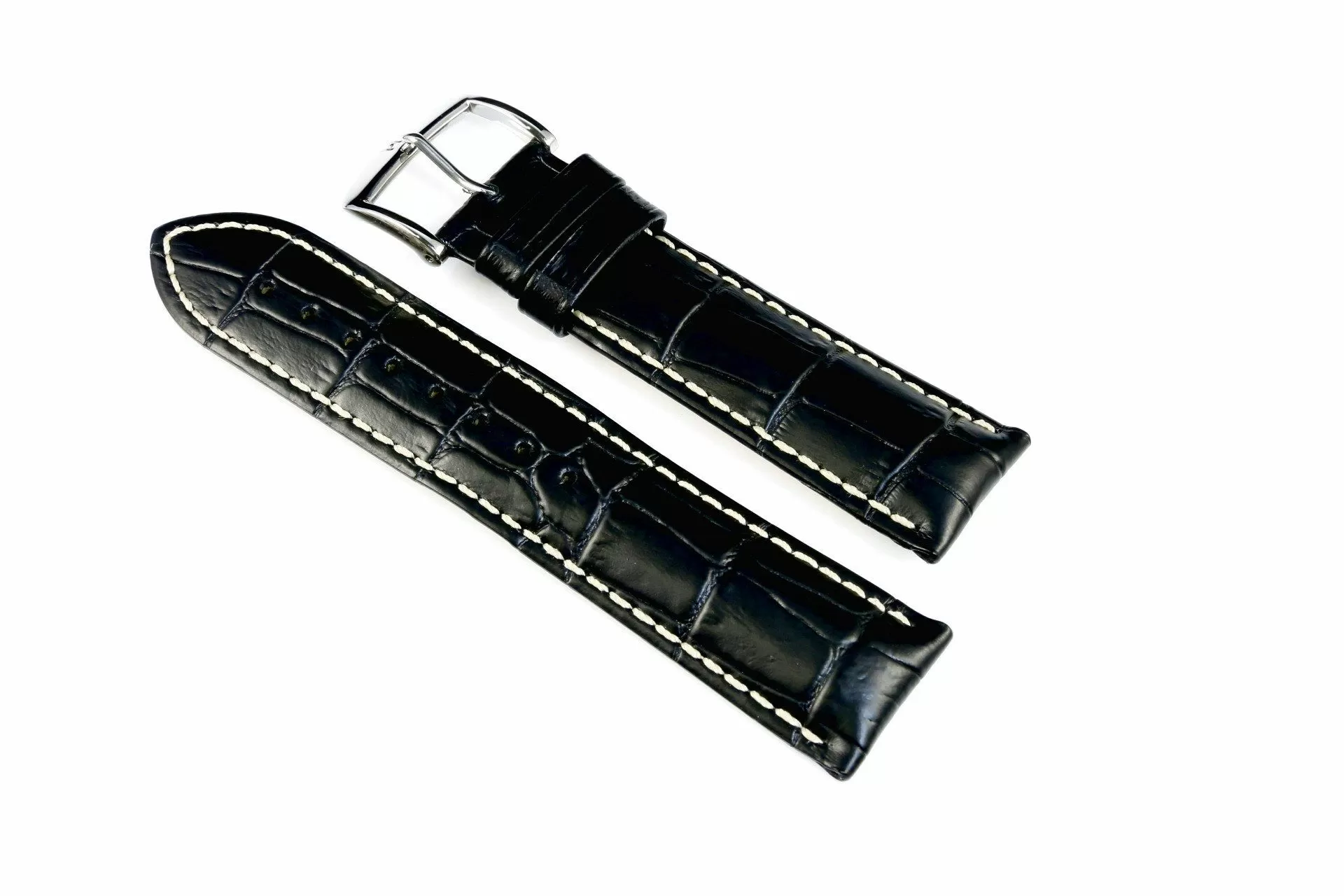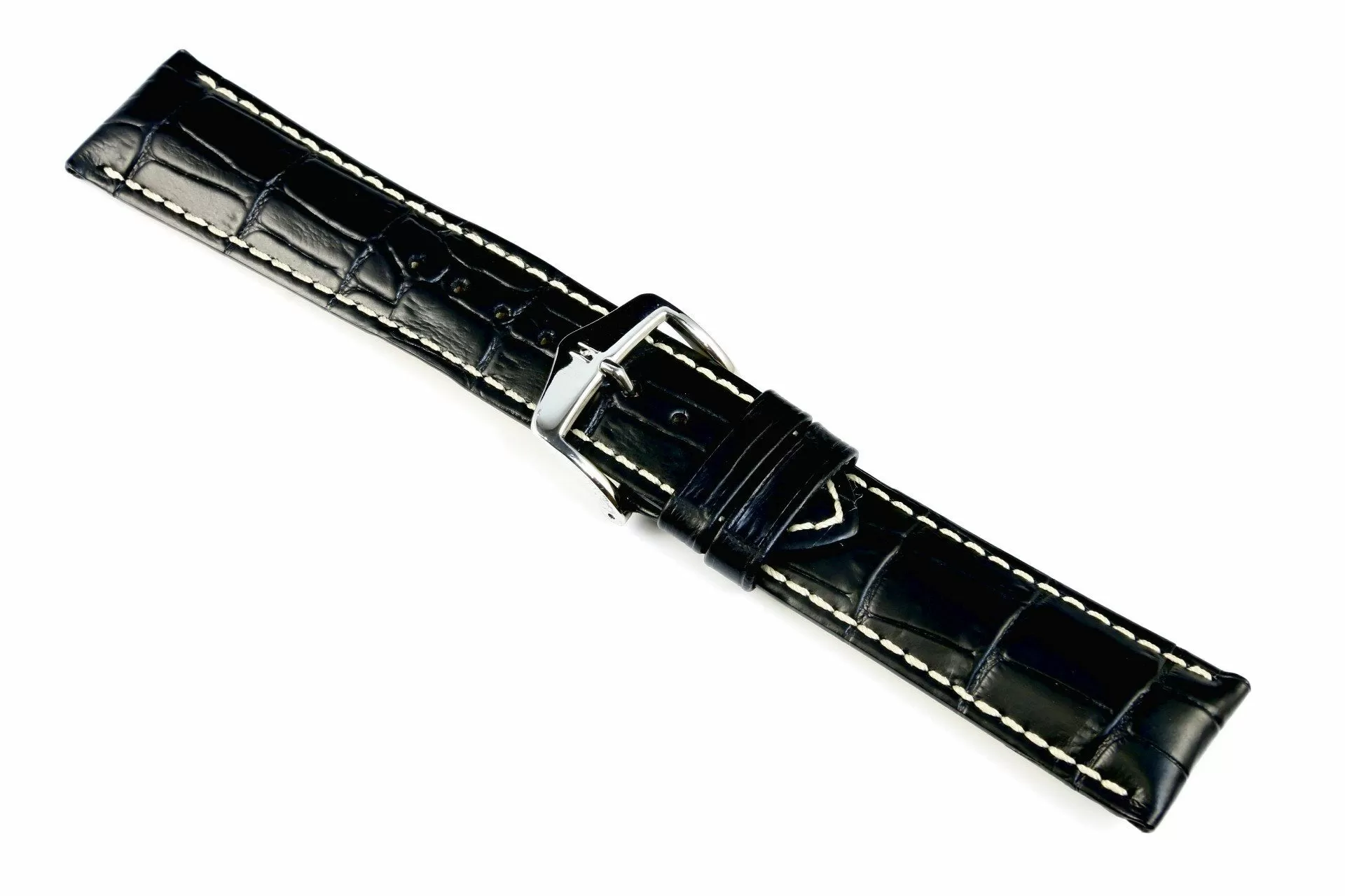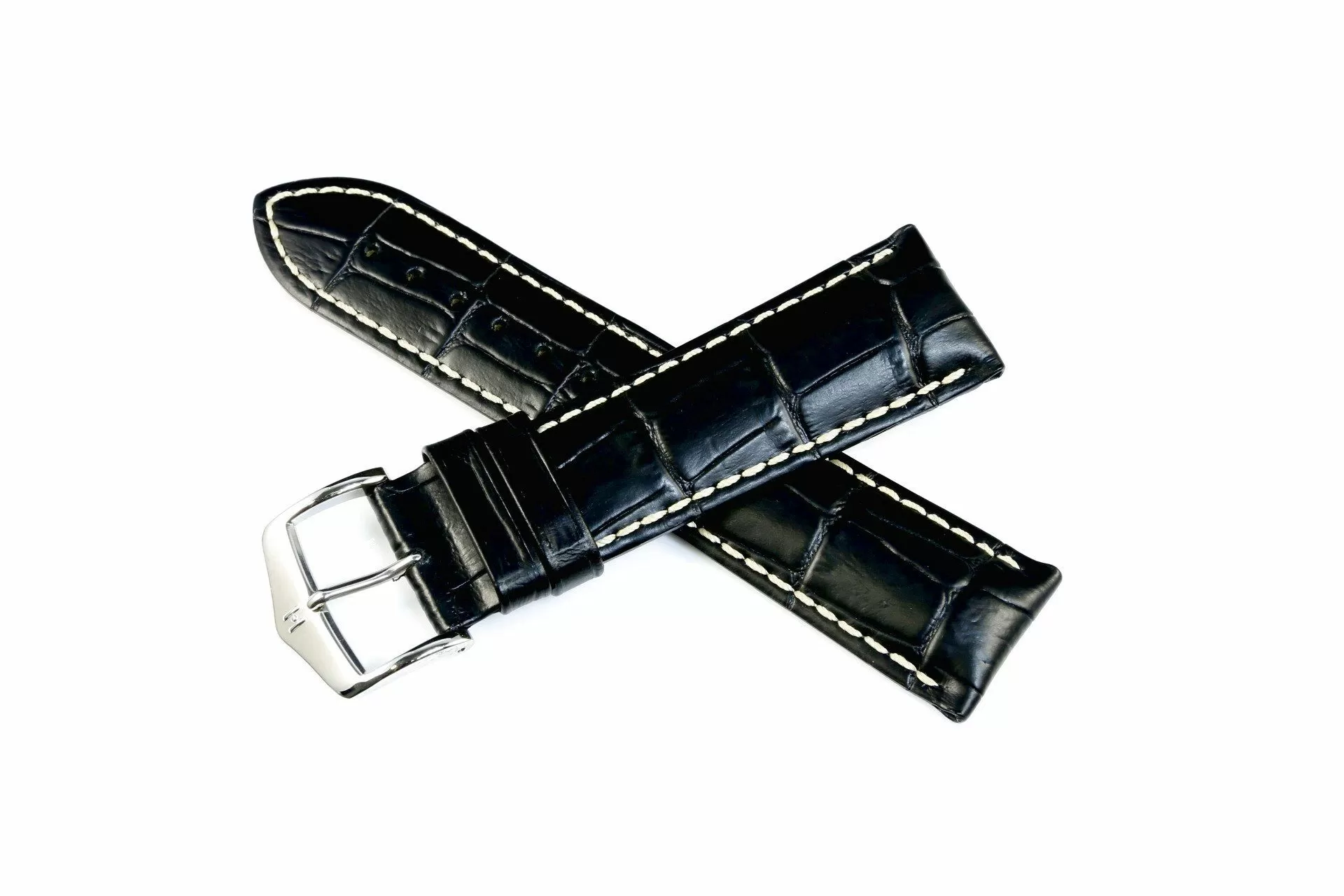 Klasyczny czarny pasek skórzany z lini HIRSCH Exotic embossed leather to pasek który ma klasyczny charakter ze sportową nutą co czyni go bardzo popularnym akcesorium. Wykonany ręcznie z najlepszej włoskiej skóry cielęcej  z naturalnie wyglądającymi tłoczeniami łuski aligatora w półmatowym dwutonowym wykończeniu. Rozmiar 19 mm, klamerka w kolorze srebrnym, ceniona austriacka marka Hirsch. Modena jako model należy do lini Hirsch softglove lining leatherGrube przeszycia w białym kolorze  podkreślają wyraźny charakter i  dodają trwałości.