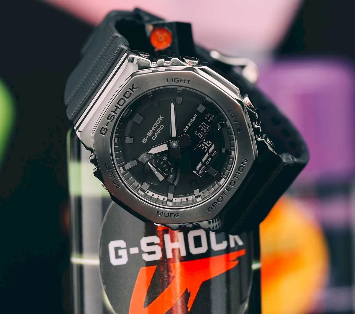 Zegarek Casio GM-2100BB-1AER wstrząsoodporny zegarek w czarnej kolorystyce z kopertą wykonaną ze stali szlachetej  i paskiem wykonanym z tworzywa sztucznego w czarnym kolorze, to niebanalna propozycja w całosci zachowana w kolorze czarnym, która doskonale dopasuje się do każdej stylizacji. Niezwykle wytrzymały, wykonany z bardzo trwałych i odpornych na uszkodzenia oraz zarysowania materiałów. Na uwagę zasługuje wysokiej jakości stal szlachetna  z której wykonano kopertę zegarka, której antyalergiczne właściwości oraz niebywała wytrzymałość sprawiają, że to zegarek, który może być noszony przez każdego i w każdej sytuacji.