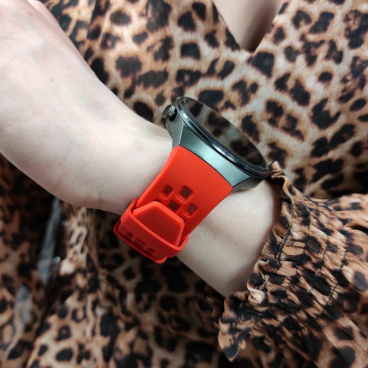 Zaawansowany technologicznie czarno-czerwony smartwatch Rubicon RNCE68 z możliwością prowadzenia rozmów to nowa propozycja uwielbianego prze fanów smartwatchy producenta Rubicon którego produkty na co dzień poprawiają życie ludzi na Całym Świecie. Okrągła obudowa o szerokości 46mm doskonale będzie się prezentowała na męskim oraz na damskim nadgarstku, zapewniając łatwy dostęp do wszystkich funkcji dzięki temu, że posiada dotykowy wyświetlacz. Wygoda użytkowania na pewno poprawi zadowolenie z treningu, a wskazania czujników pulsu, ciśnienia i natlenienia pozwolą poprawić jego jakość.Zegarek Rubicon RNCE68 czarno-czerwony należy do kolekcji smartwatchy, czyli inteligentnych zegarków naręcznych, które zdecydowanie wykraczają poza funkcję wskazywania czasu, można rzec, że to zaawansowane technologicznie urządzenie, o rozbudowanych opcjach, zamkniętych w formie zegarka. Na pierwszy rzut oka to zwykły sportowy zegarek z wyświetlaczem– okrągła koperta, prosty pasek z tworzywa, natomiast posiada funkcje, które do niedawna mógł mieć jedynie telefon, lub urzadzenia pomiarowe.