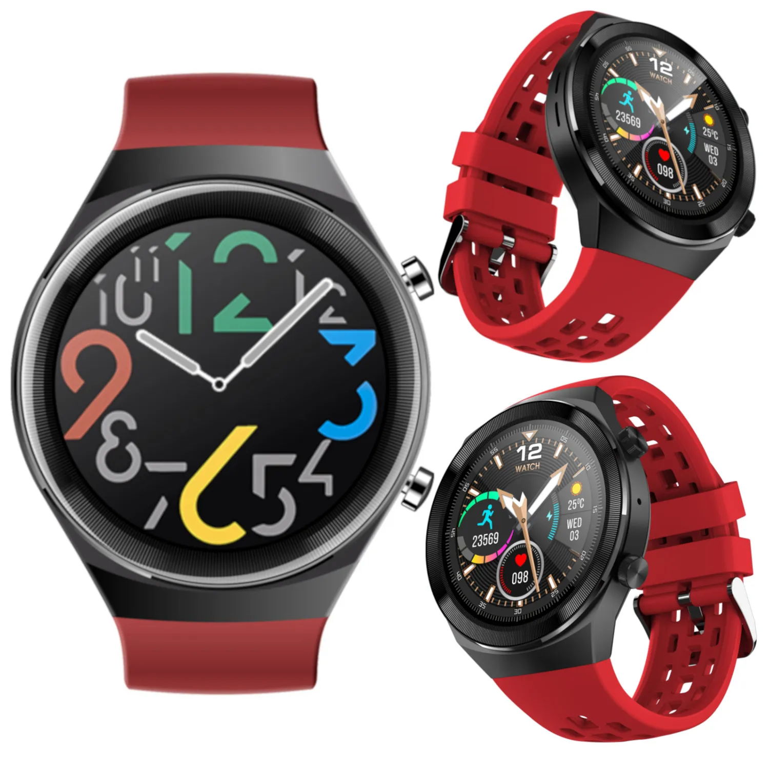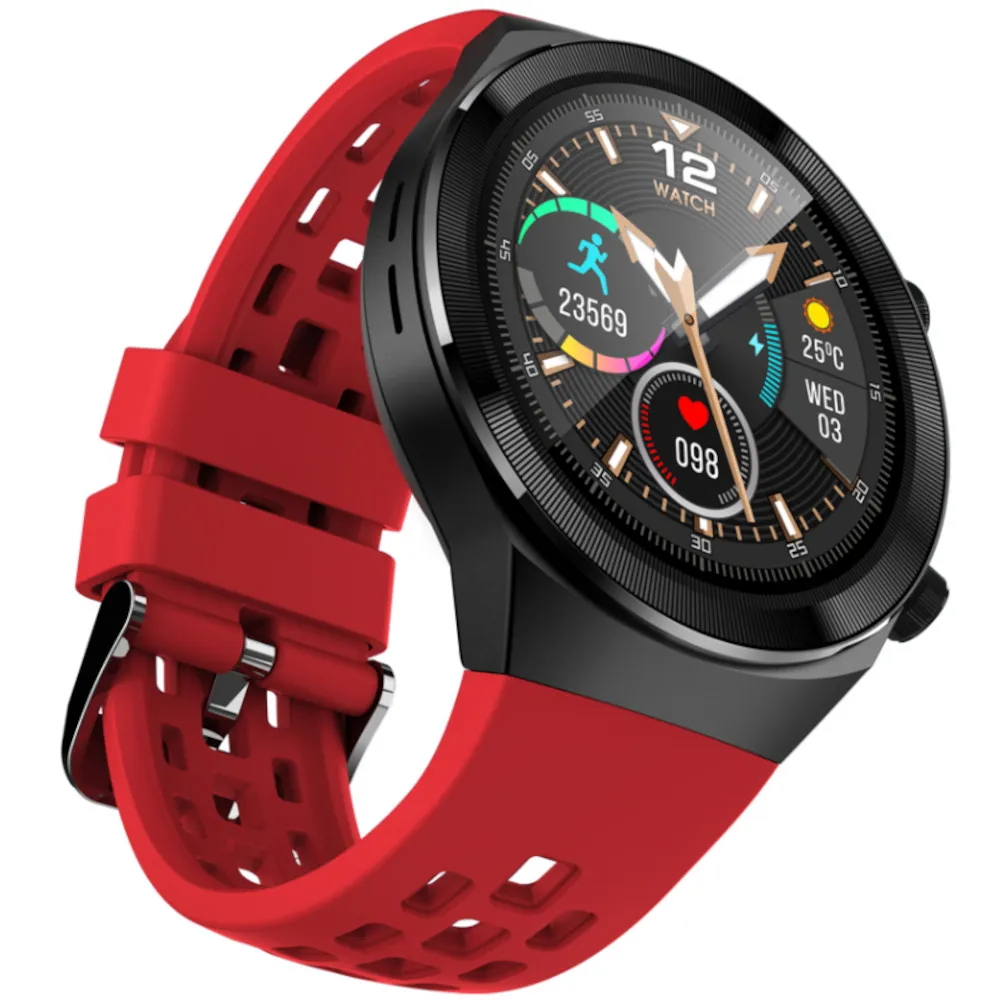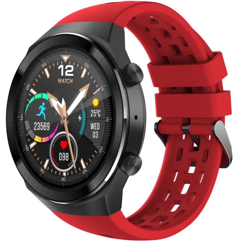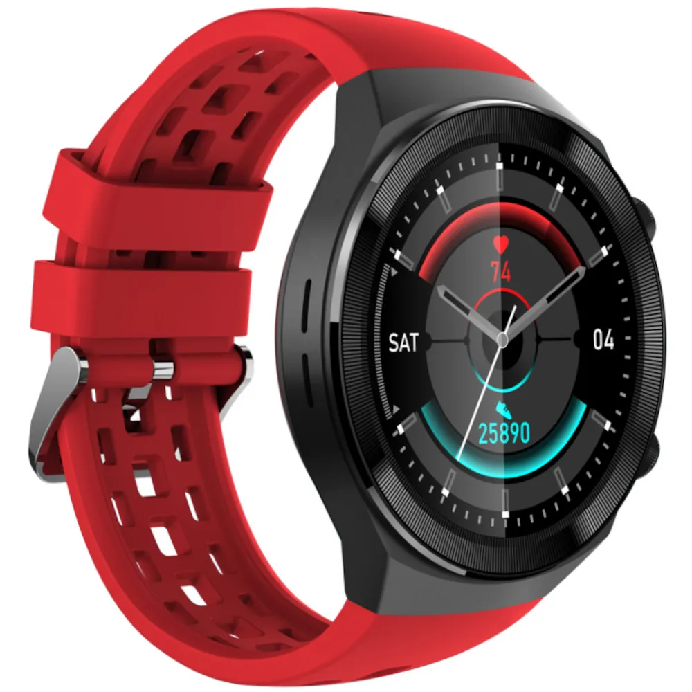 Czerwony smartwatch z funkcją rozmowy Rubicon RNCE68 SMARUB064 Sport Kalorie Kroki Ciśnienie