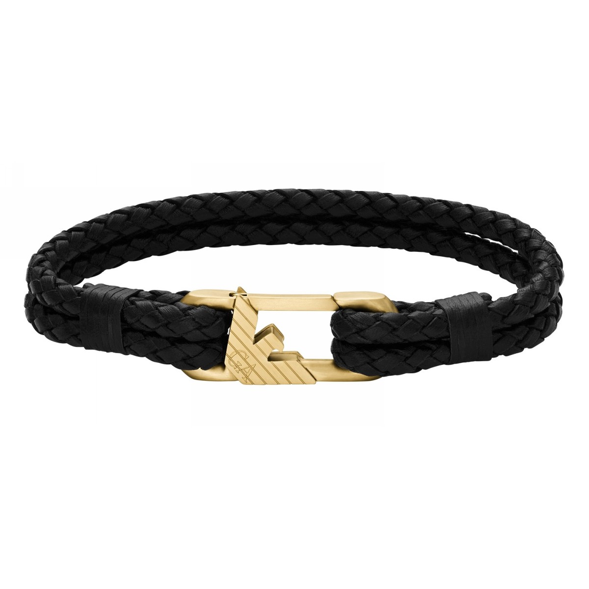 Emporio Armani Eagle Logo bransoletka męska skórzana EGS3245710 to połączenie klasycznej elegancji i nowoczesnego designu. Skórzany splot w kolorze czerni kontrastuje z wyjątkowym, złotym zapięciem w kształcie kultowego logo orła Armani, tworząc unikalny efekt, który od razu przyciąga uwagę. To biżuteria zaprojektowana z myślą o mężczyznach, którzy lubią podkreślać swój charakter za pomocą subtelnych, ale wyrazistych akcentów.