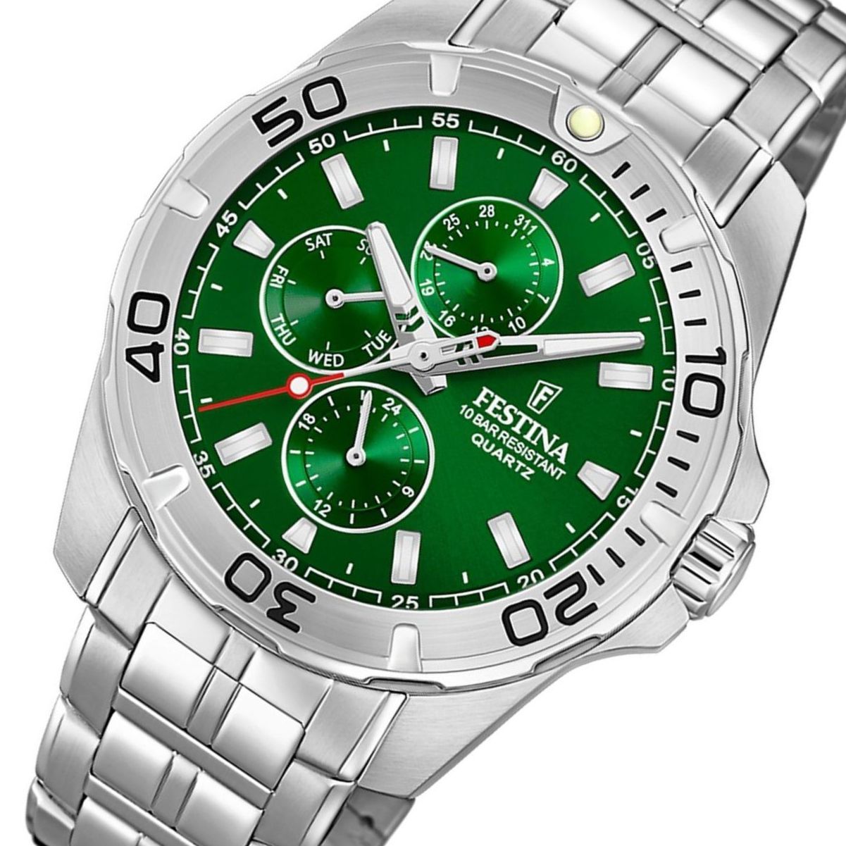 Festina Chronograph to jedna z najpopularniejszych serii hiszpańskiego producenta. Charakteryzuje się tym, że w każdym modelu znalazł się właśnie chronograf. Propozycje z tej kolekcji to zarówno egzemplarze o sportowym, jak i eleganckim charakterze, oferujące dokładny stoper wskazówkowy. To jednak nie koniec funkcji i zalet urządzeń z tej serii.