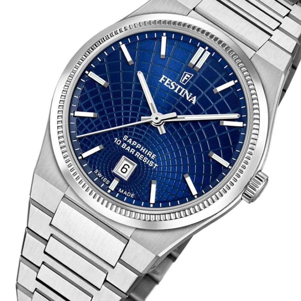 Festina Swiss Made 20051/4 Zegarek Męski srebrny z granatową tarczą
