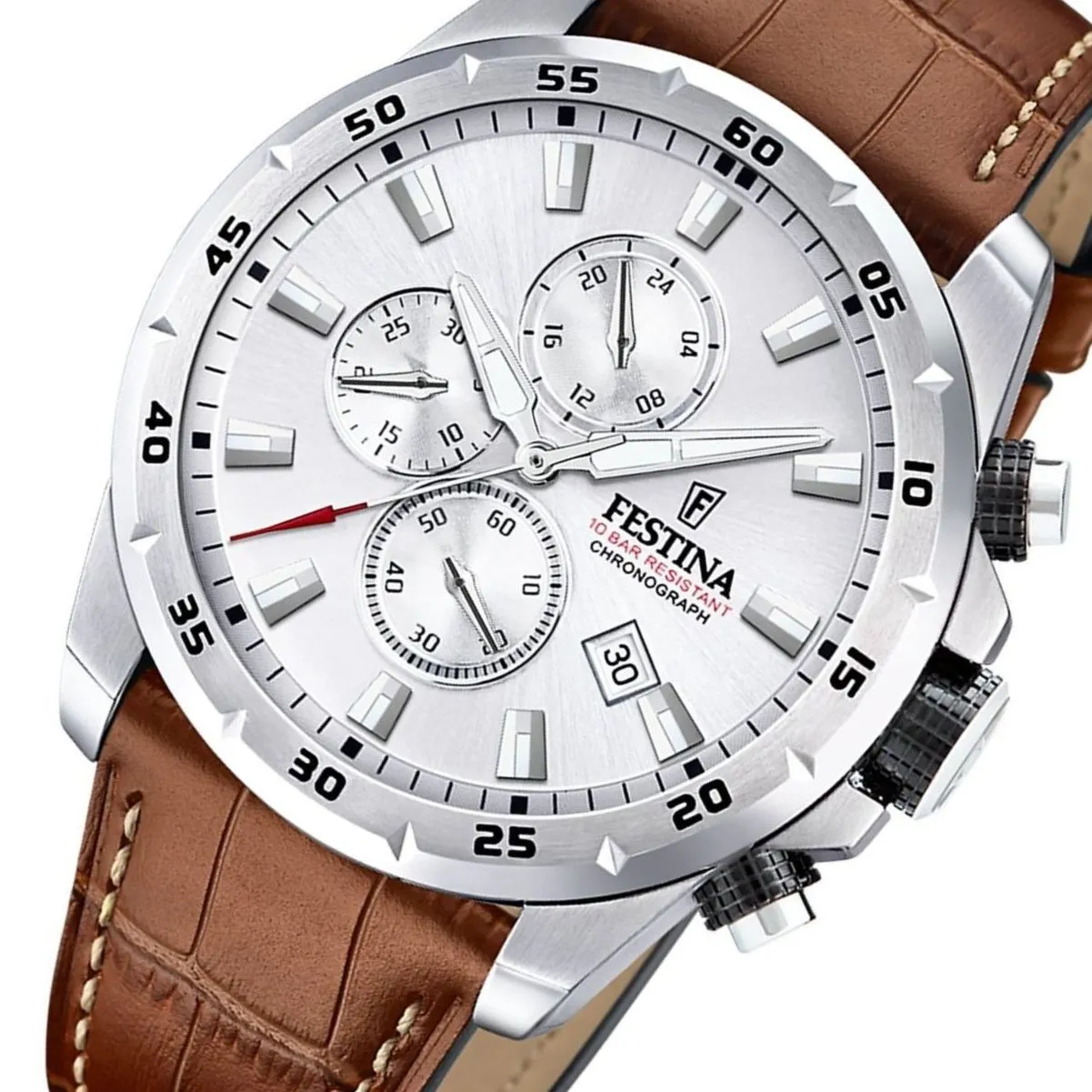 Festina Chronograph to jedna z najpopularniejszych serii hiszpańskiego producenta. Charakteryzuje się tym, że w każdym modelu znalazł się właśnie chronograf. Propozycje z tej kolekcji to zarówno egzemplarze o sportowym, jak i eleganckim charakterze, oferujące dokładny stoper wskazówkowy. To jednak nie koniec funkcji i zalet urządzeń z tej serii.
