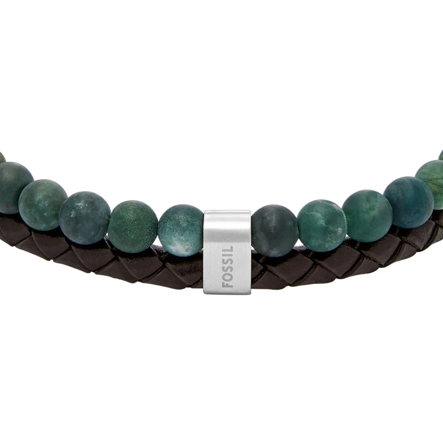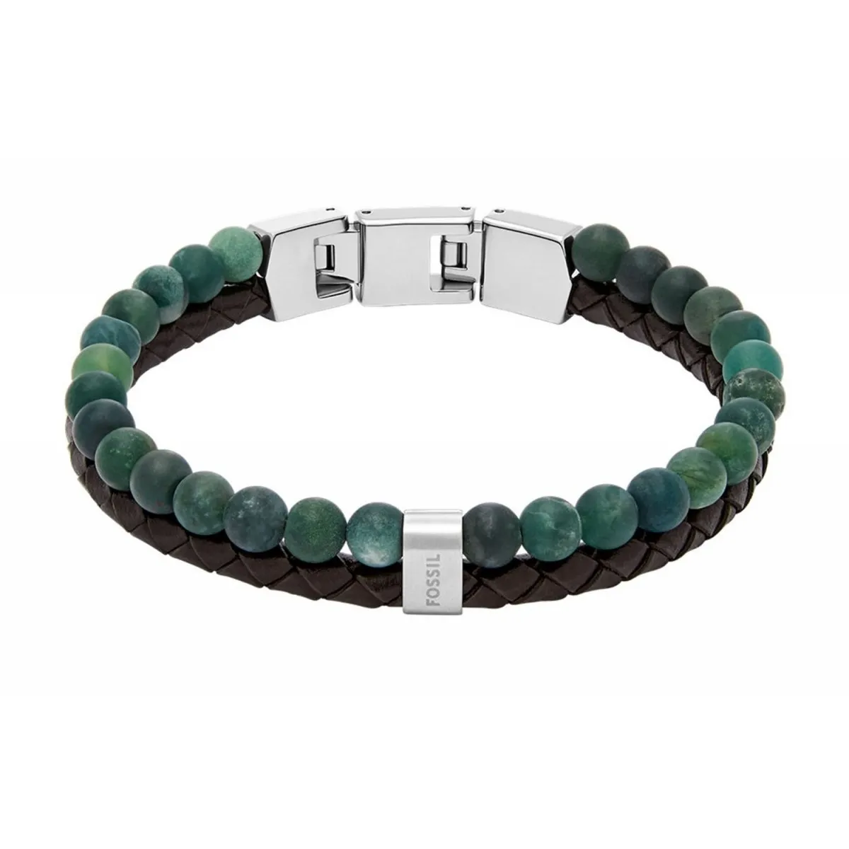 Fossil Beads Bransoletka Męska JF04854040 w połączeniu brązowej skóry i zielonych koralików to Stylowy Akcent dla Współczesnego Mężczyzny.