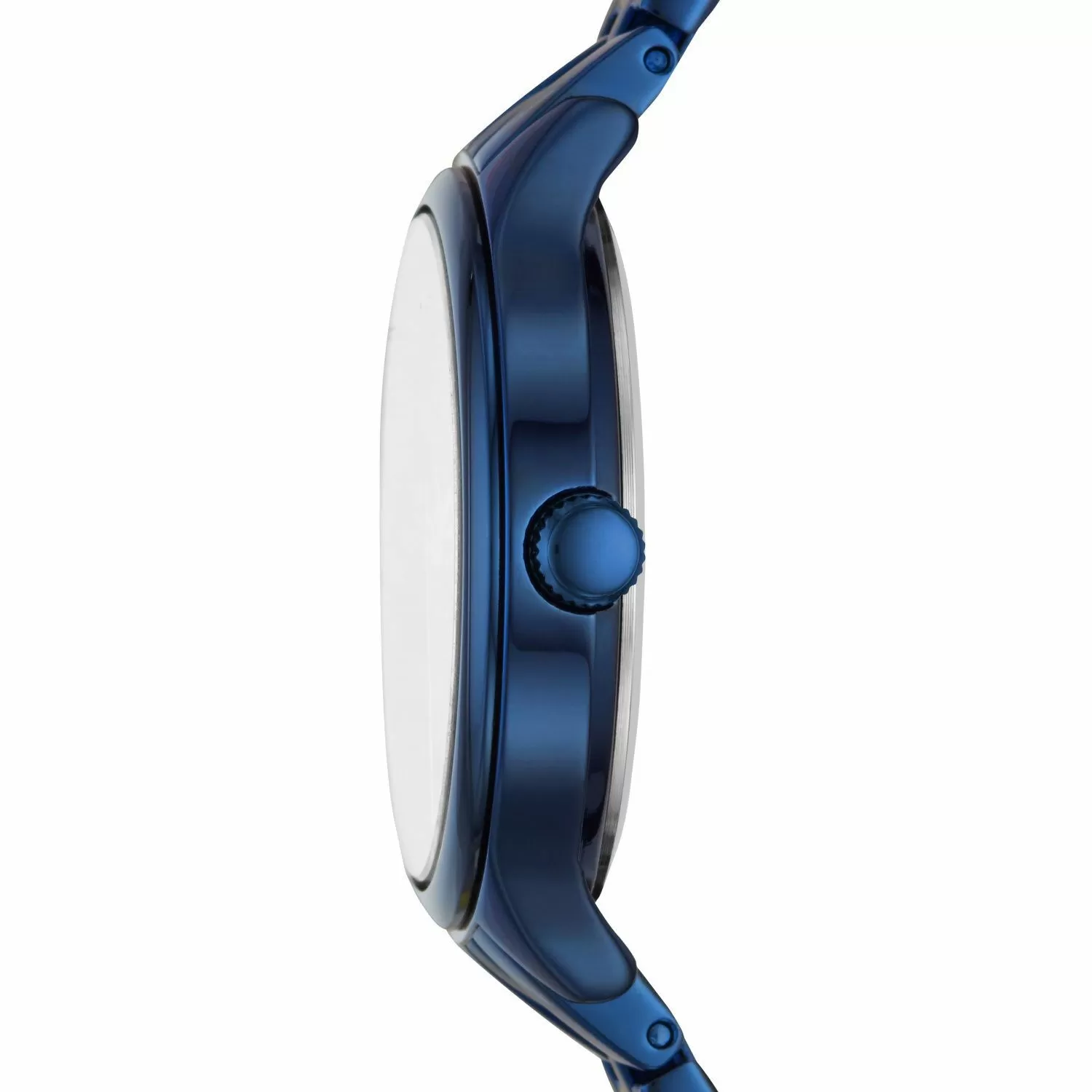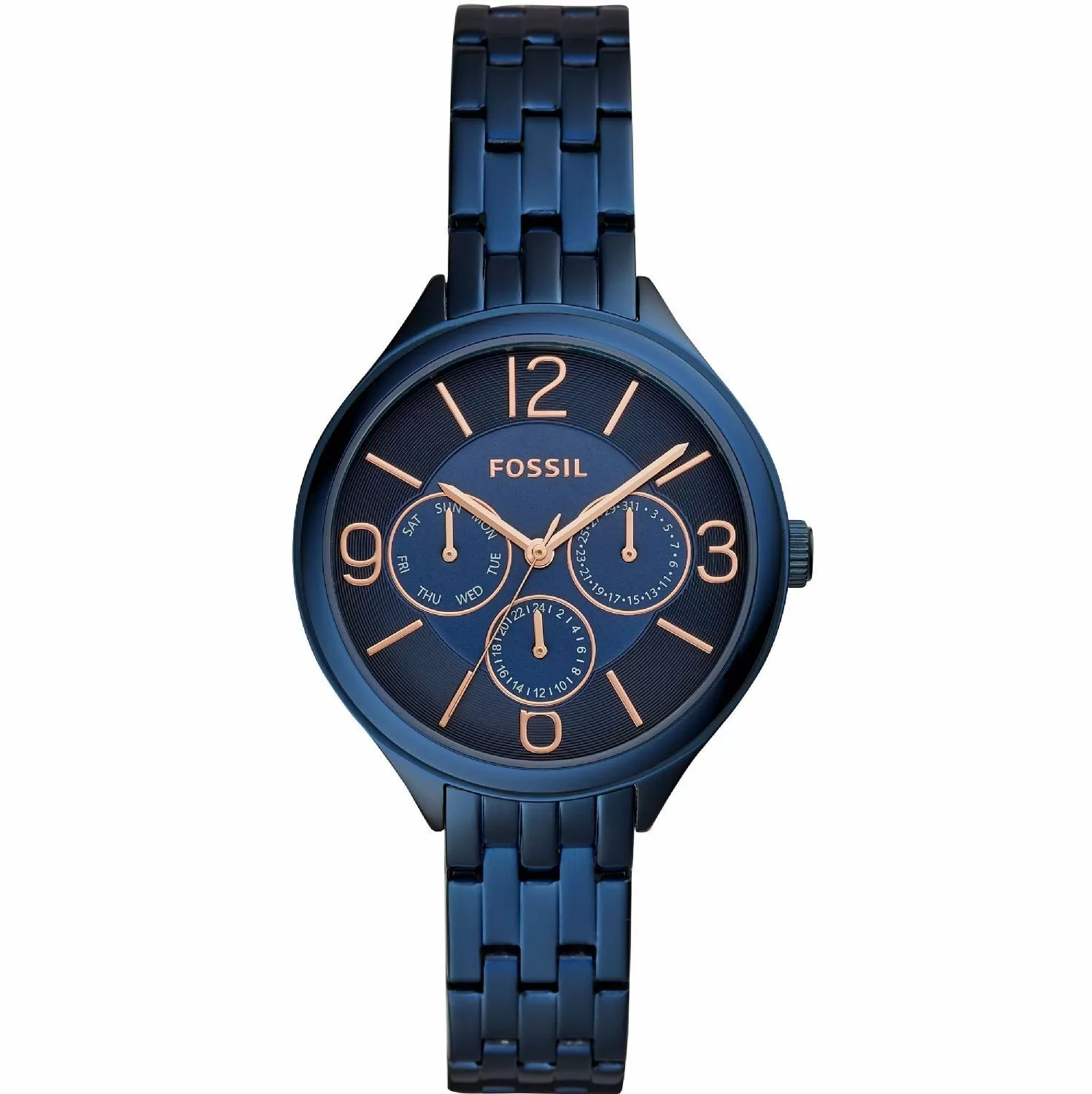 Model BQ3225 to nowoczesny czasomierz znanej i cenionej marki na rynku fashion - amerykańskiego producenta najmodniejszych akcesoriów - FOSSIL. Ten zegarek damski nie tylko będzie niezawodnie wskazywał czas, ale też będzie stylowym dodatkiem do każdej stylizacji. Jak wszystkie w kolekcji zegarki Fossil Suitor, model o symbolu BQ3225 jest połączeniem designerskiego stylu z wysokiej jakości materiałami wykonania. Koperta o szerokości 36.00 mm, której kształt jest okrągły, wykonana została z odpornej na uszkodzenia i korozję stali szlachetnej i ma kolor niebieski. Grubość koperty w tym modelu wynosi 8.00 mm, dzięki czemu idealnie będzie prezentował się na nadgarstku każdej nowoczesnej kobiety. Designerski charakter, jaki posiada ten zegarek Fossil BQ3225 podkreśla idealnie dopasowana do koperty bransoleta, która ma kolor niebieski, wykonana z wysokiej jakości stali szlachetnej o  szerokości przy uszkach koperty 14.00 mm. Zegarek Fossil BQ3225 działa na dokładnym mechanizmie kwarcowym, zasilanym za pomocą baterii, ukrytym pod stylową tarczą, której odcień perfekcyjnie komponuje się z całym designem tego modnego czasomierza. Oznaczenia godzin tworzą cyfry arabskie i indeksy, dzięki którym zegarek BQ3225 jest bardzo czytelny. Ten modny damski zegarek Fossil posiada wodoszczelność 5ATM. Model BQ3225 jest nie tylko stylowym dodatkiem, ale też dokładnym czasomierzem, który prócz wskazania aktualnej godziny posiada rozbudowany datownik. Cały design zegarka jest zgodny z najbardziej aktualnymi trendami i można go określić jako styl fashion. Zegarek Fossil BQ3225, dzięki połączeniu aktualnych trendów z najmodniejszą kolorystyką i wykonaniem z wysokiej jakości materiałów, będzie niezastąpionym dodatkiem, idealnie pasującym na nadgarstek każdej nowoczesnej kobiety.
