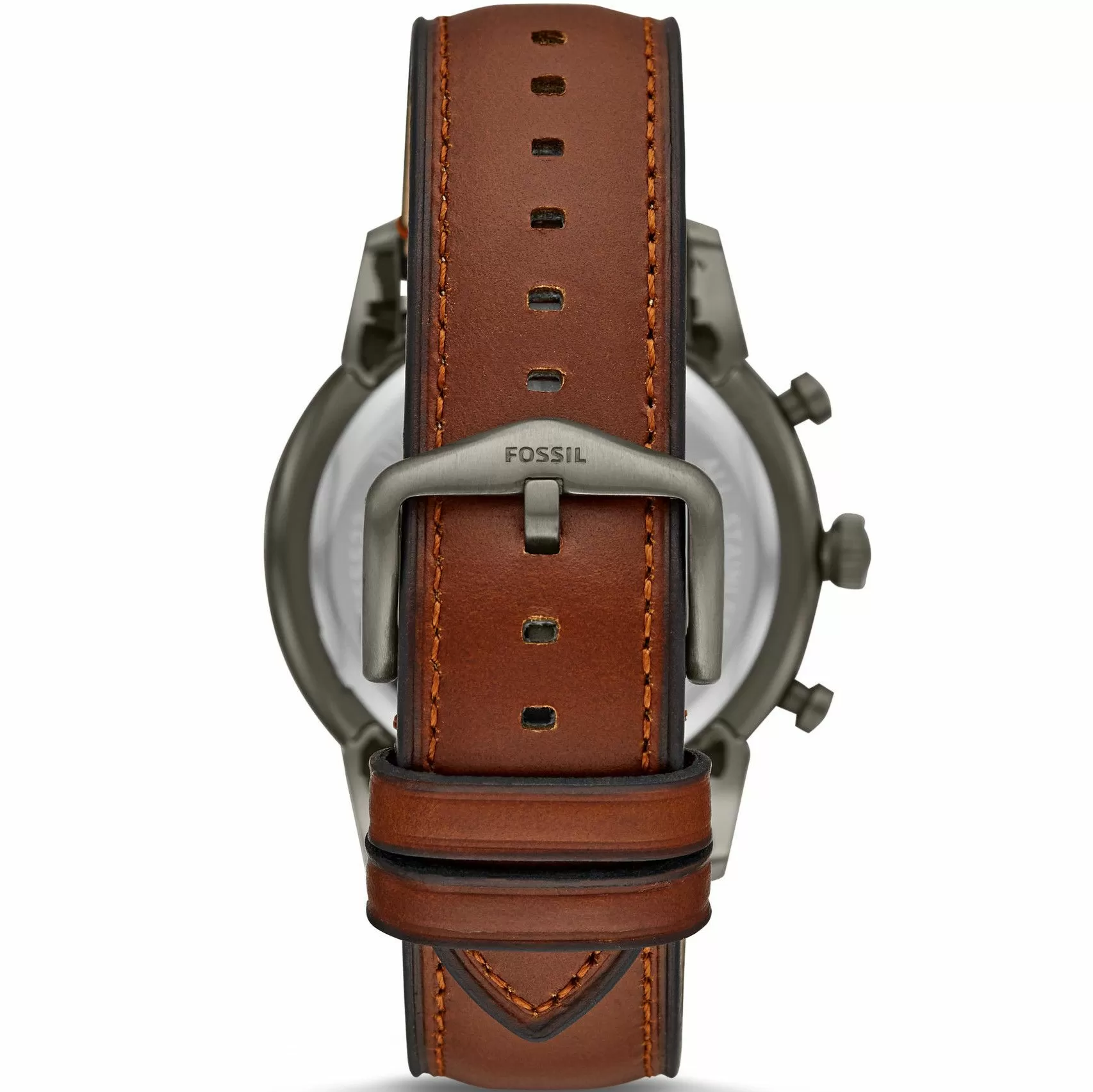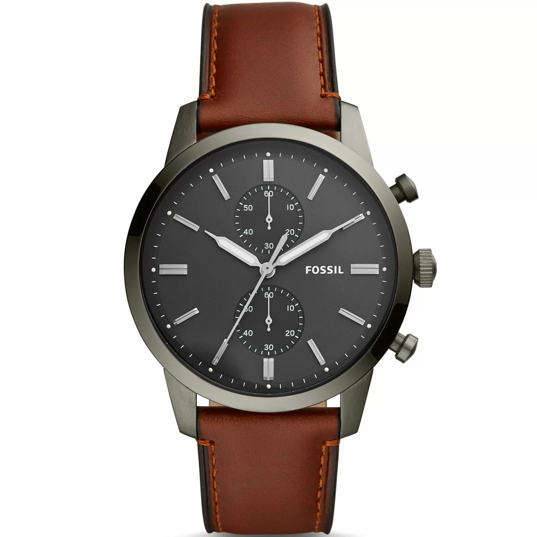 FOSSIL FS5522 z grafitową kopertą o monochromatycznych oznaczeniach, z brązowym paskiem o ciemniejszych brzegach oznaczeniach to stylowy sportowo-elegancki męski czasomierz z funkcją stoperaTen zegarek męski nie tylko będzie niezawodnie wskazywał czas, ale też będzie stylowym dodatkiem do każdej stylizacji. Jak wszystkie w kolekcji zegarki Fossil Townsman, model o symbolu FS5522 jest połączeniem designerskiego stylu z wysokiej jakości materiałami wykonania. Koperta o szerokości 44.00 mm, której kształt jest okrągły, wykonana została z odpornej na uszkodzenia i korozję stali szlachetnej i ma kolor grafitowy. Grubość koperty w tym modelu wynosi 12.00 mm, dzięki czemu idealnie będzie prezentował się na nadgarstku każdego nowoczesnego mężczyzny. Designerski charakter, jaki posiada ten zegarek Fossil FS5522 podkreśla idealnie dopasowany do koperty pasek, wykonany z wysokogatunowej skóry, o szerokości przy uszkach koperty 22.00 mm.