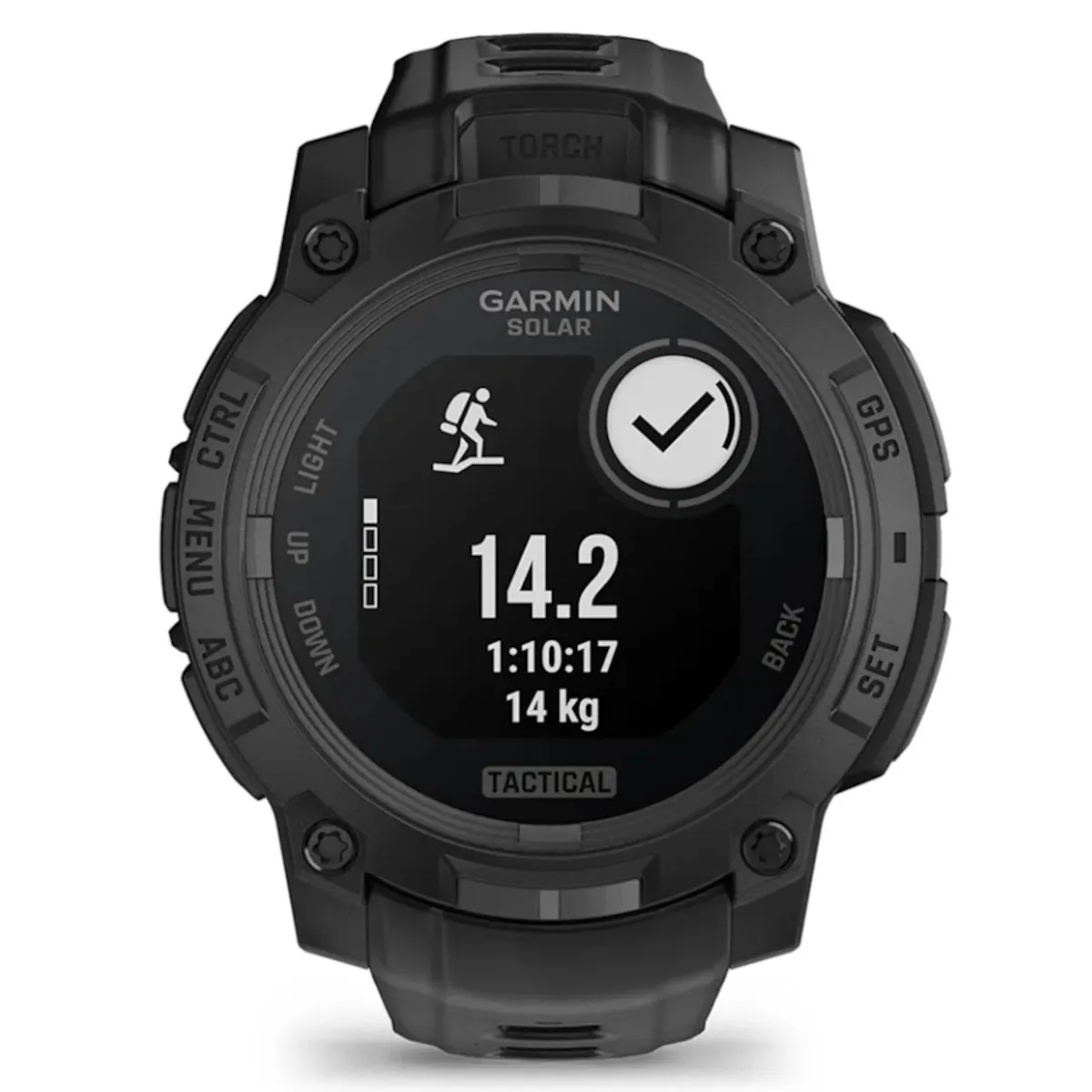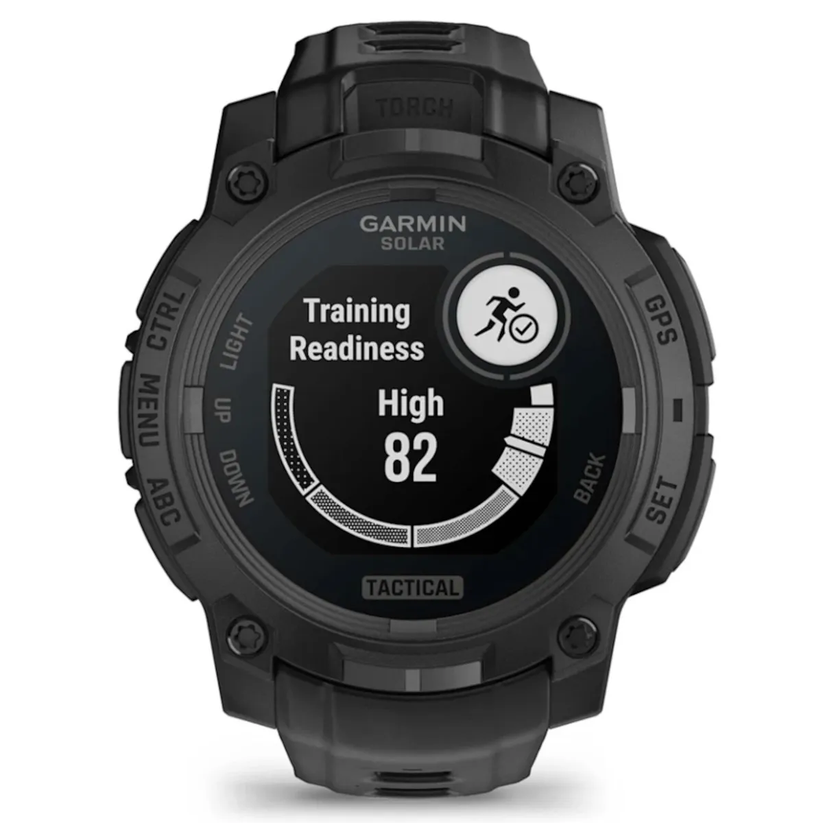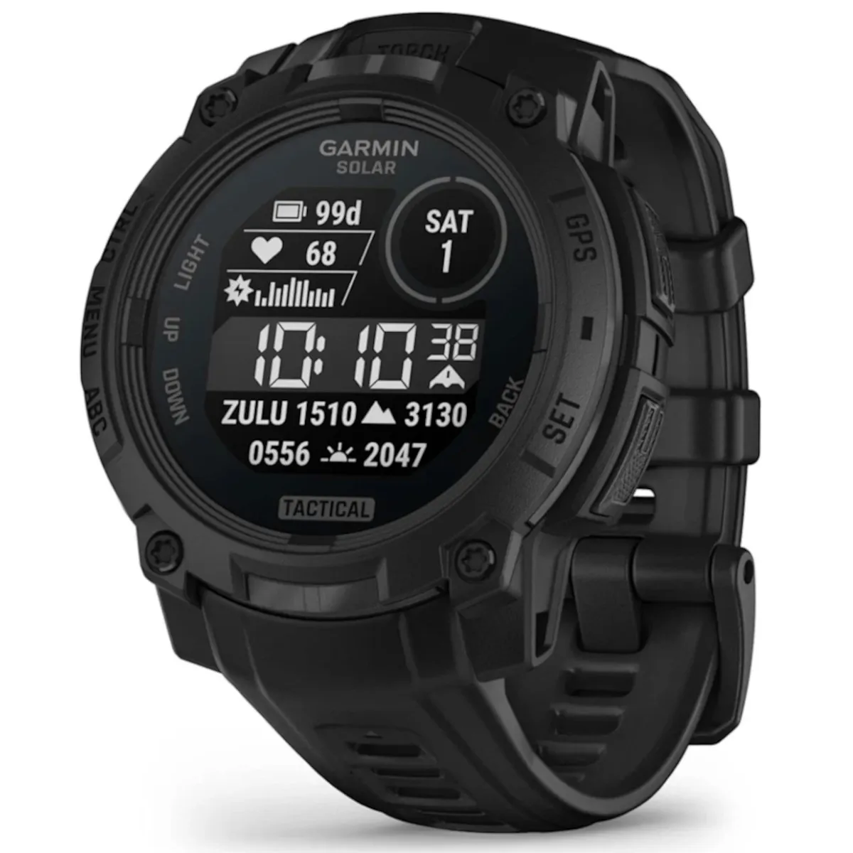 Garmin Instinct 3 Solar Tactical Edition 45 mm w czarnej wersji (010-02934-50) to wytrzymały smartwatch GPS, który został stworzony z myślą o najtrudniejszych misjach. Wyróżnia się on funkcją ładowania energią słoneczną, wzmocnionym metalem bezelem oraz specjalnymi funkcjami taktycznymi.