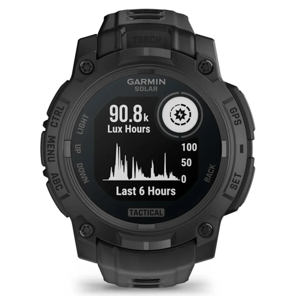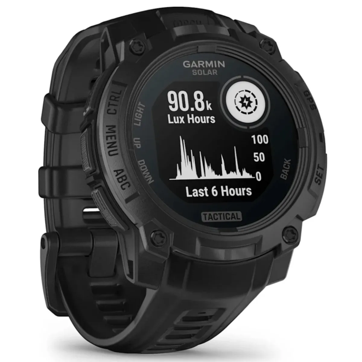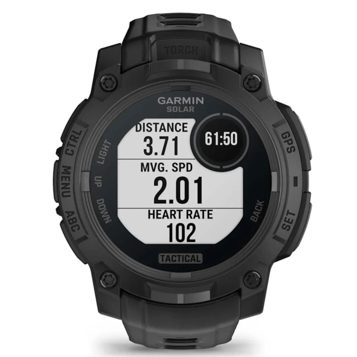 Garmin Instinct 3 Solar Tactical Edition 45 mm w czarnej wersji (010-02934-50) to wytrzymały smartwatch GPS, który został stworzony z myślą o najtrudniejszych misjach. Wyróżnia się on funkcją ładowania energią słoneczną, wzmocnionym metalem bezelem oraz specjalnymi funkcjami taktycznymi.