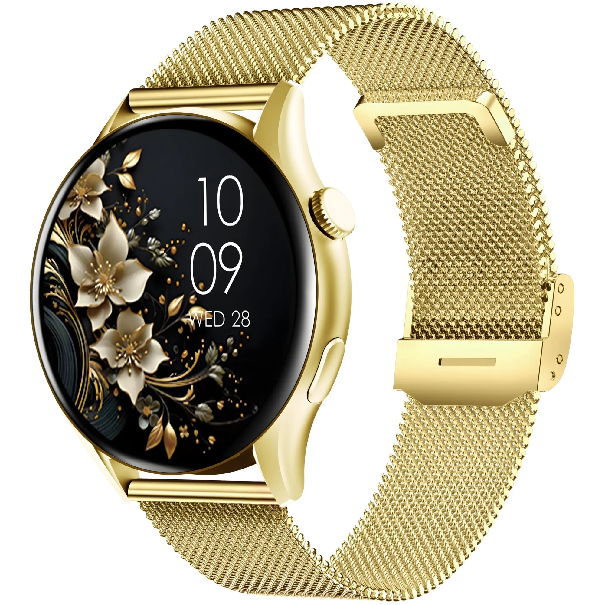 - stalowy pasek mesh w kolorze złotym- elegancki, stylowy i doskonały do bardziej formalnych stylizacji.