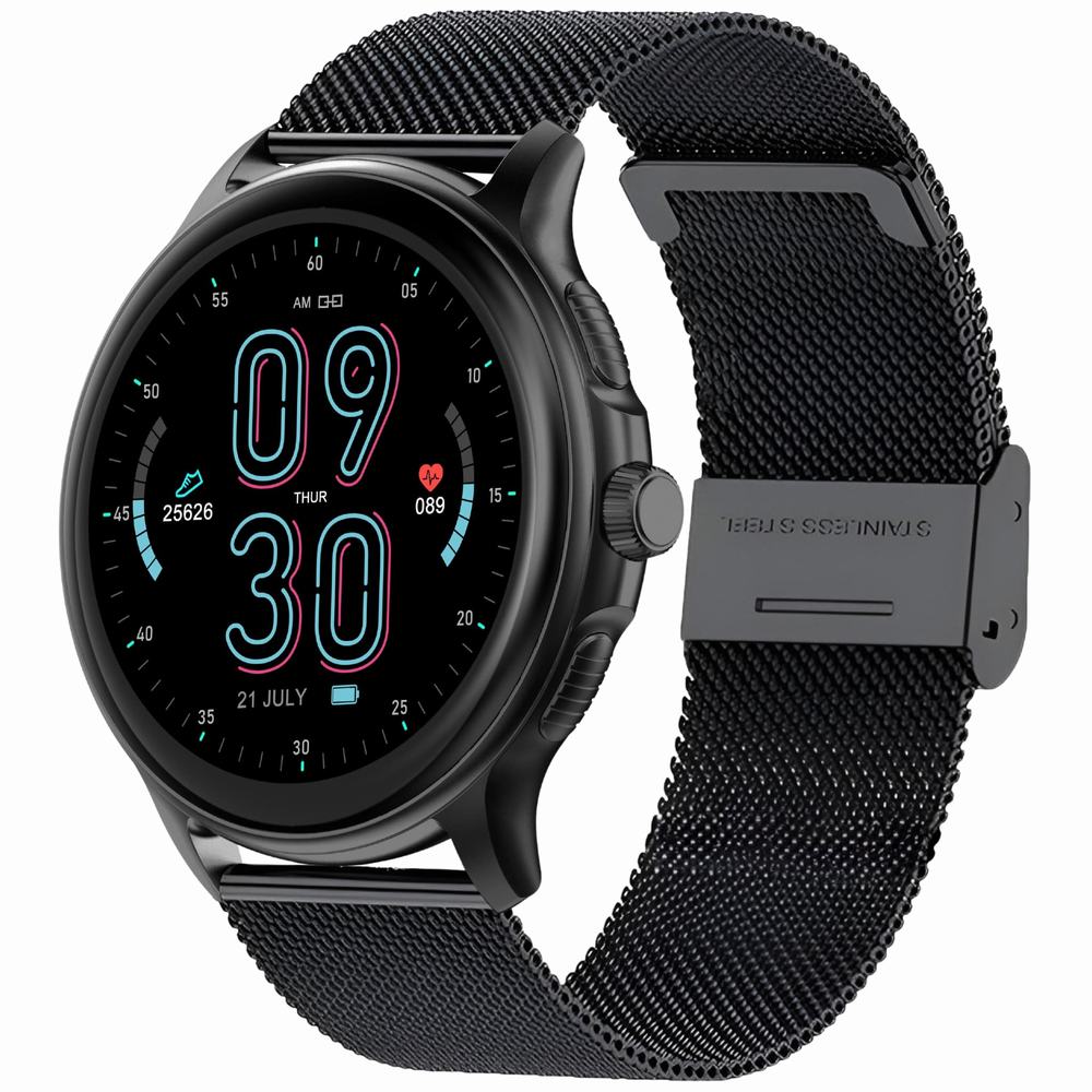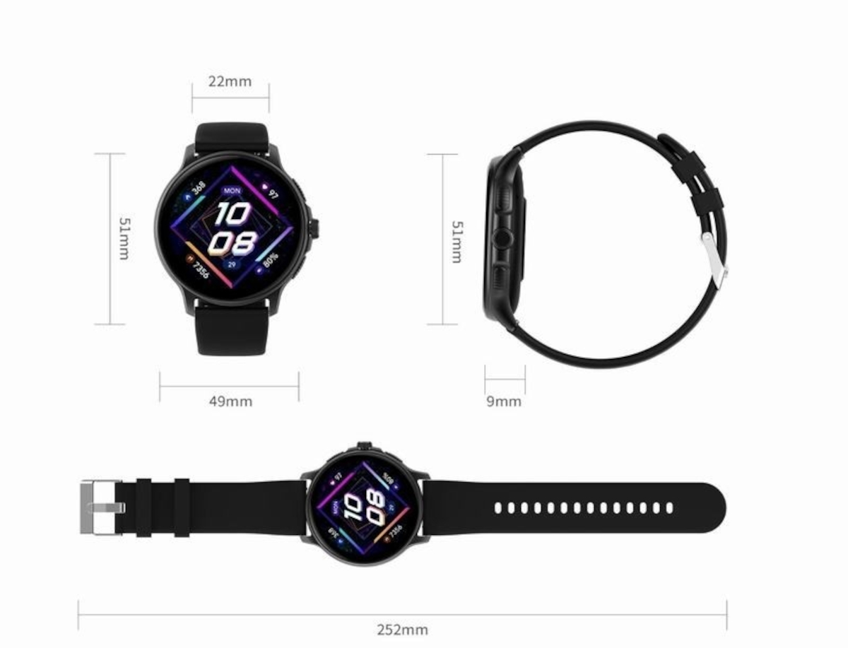 GT12‑2 prezentuje się znakomicie, a jego stylowa forma podkreśla smukła koperta o średnicy 49 mm i grubości zaledwie 9 mm. Czarna stalowa bransoleta typu mesh i granatowy pasek gumowy w zestawie pozwalają dopasować smartwatch do każdej okazji.