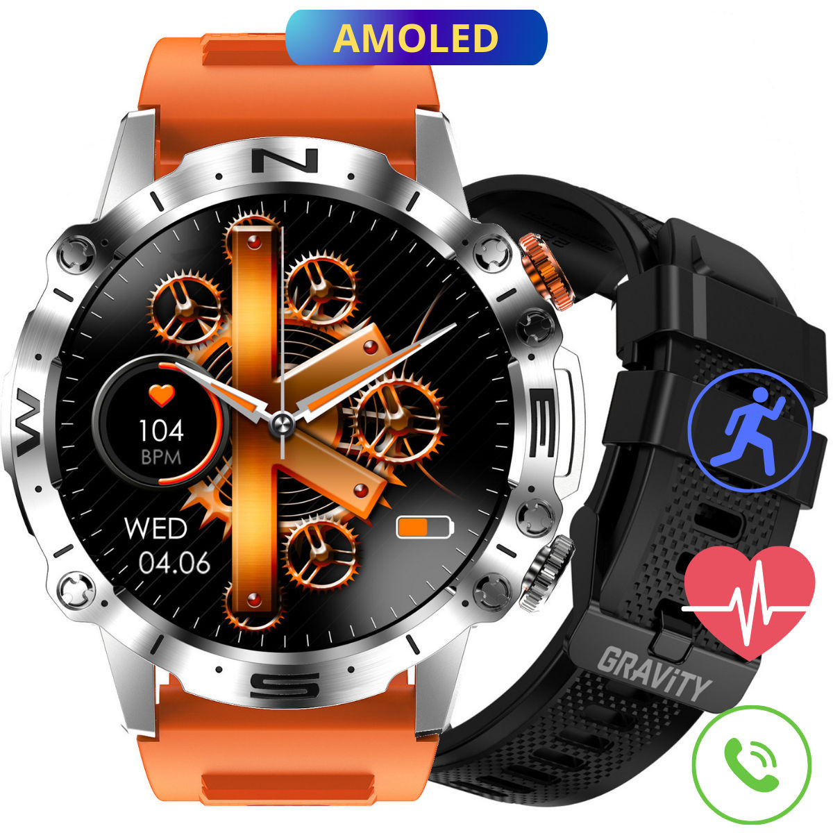 GRAVITY GT20-4 pomarańczowy smartwatch męski z funkcją rozmowy • DWA PASKI