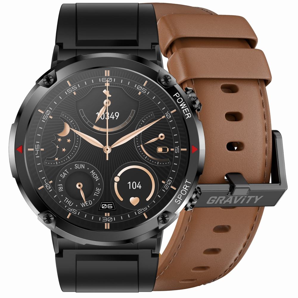 Czarno-brązowy smartwatch Gravity GT21 - największe atuty:
