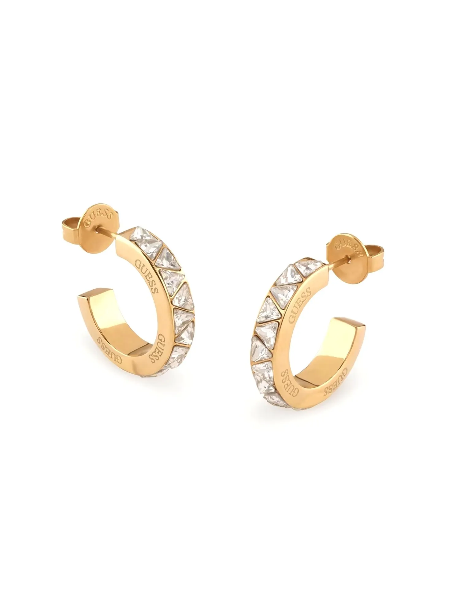 Guess TRINITY złote kolczyki kółka z kryształami JUBE04573JW