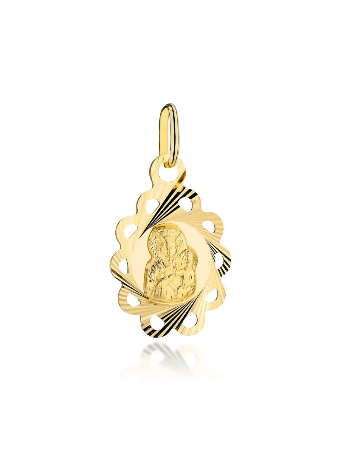 Medalik Matka Boska Częstochowska to elegancka i ponadczasowa biżuteria, która stanowi doskonały dodatek zarówno do codziennych stylizacji, jak i wyjątkowych okazji. Dzięki wykonaniu ze złota próby 585 wyróżnia się niepowtarzalnym blaskiem i doskonałą jakością.