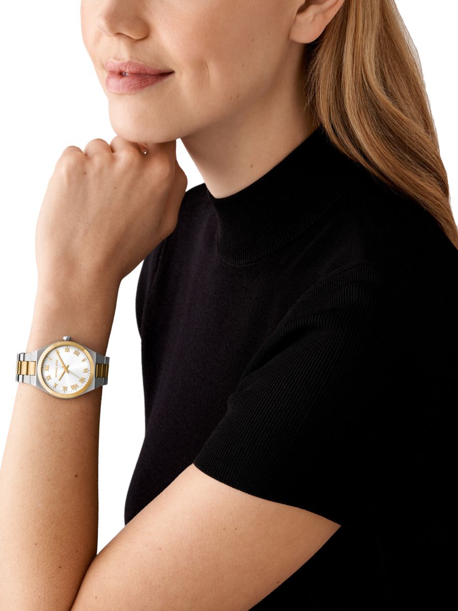 Klasyczny damski złoto-srebrny zegarek MK7464 na bransolecie