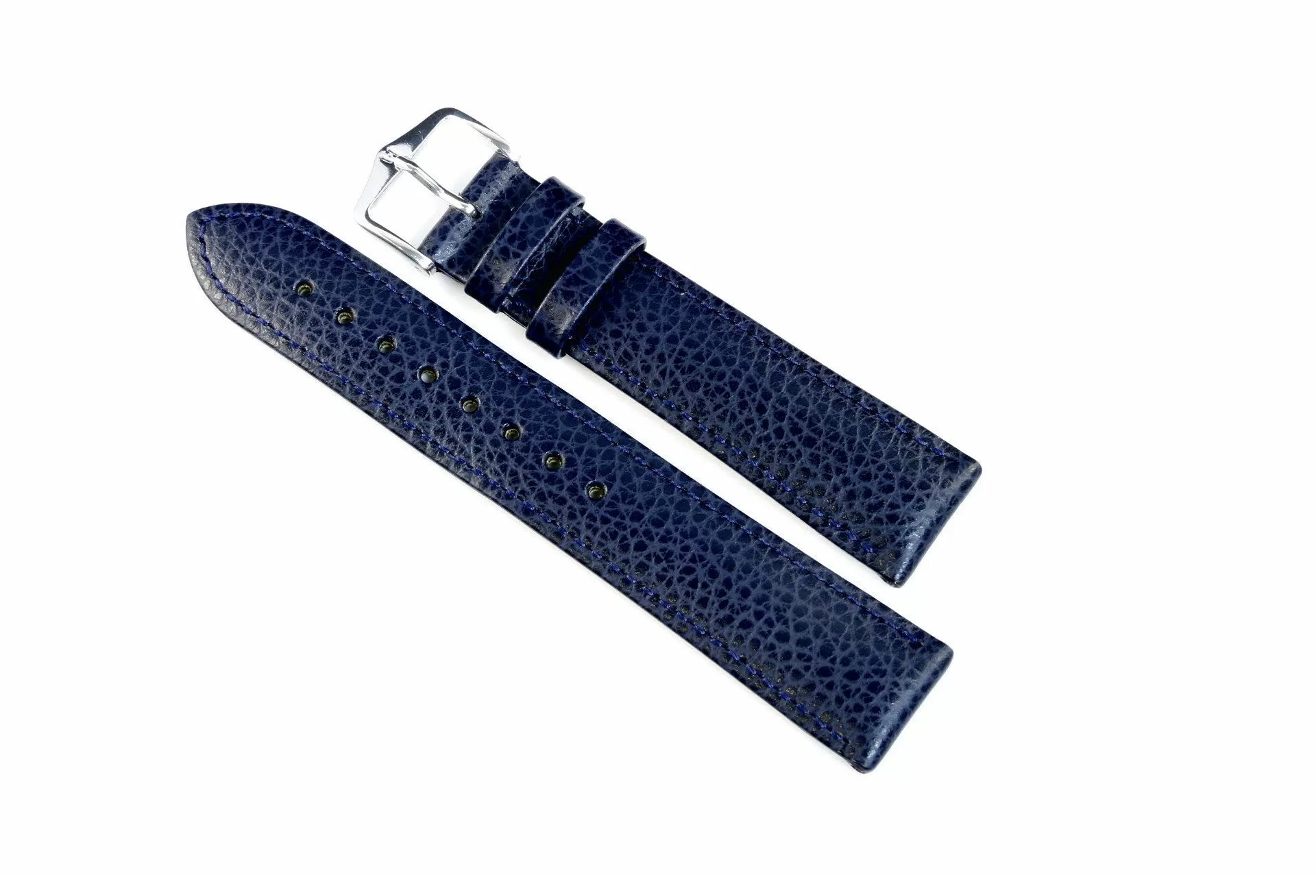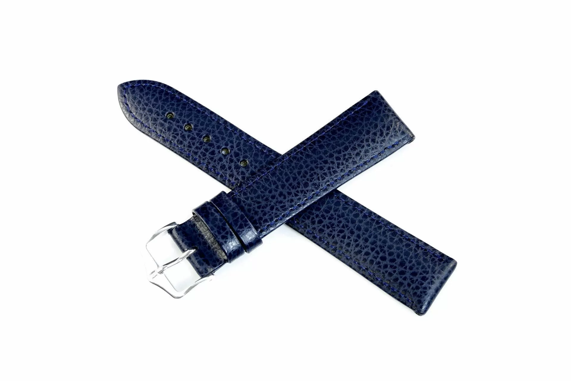 Klasyczny niebieski pasek skórzany z lini HIRSCH softglove lining leather wykonany z trwałej skóry cielęcej z tłoczeniem struktury skóry bawoła Rozmiar 24 mm, klamerka w kolorze srebrnym , ceniona austriacka marka Hirsch. Kansas jako model  należy do rodziny produktów Struktured leather. Klasyczny uniwersalny kształt , pasek skórzany wykonany ręcznie , Będzie pasował do każdego zegarka. Model wykonany jest z miękkiej skóry i rewelacyjnie sprawdzi się jako dodatek do zegarka na każdy dzień . Dla trwałości i wzmocnienia pasek został przeszyty nicią w kontrastowym kolorze lub w kolorze paska co zwiększa różnorodność opcji dopasowania do kolorystyki zegarka..