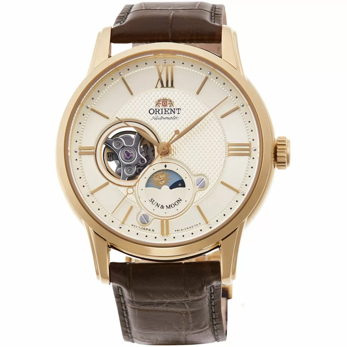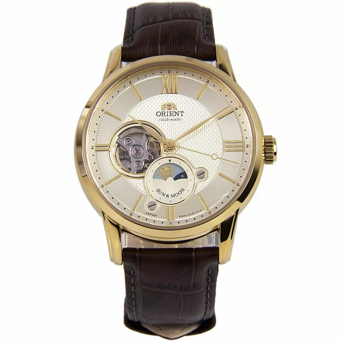 Zegarek Orient RA-AS0004S10B jest dla Ciebie, jeżeli poszukujesz klasycznego połączenia złota z brązem; skórzany brązowy pasek i złota stalowa koperta w połączeniu ze złotą tarczą tworzą produkt idealny na każdą okazję. Mechanizm  ukryto w idealnie okrągłej kopercie, wykonanej ze stali szlachetnej, którą charakteryzuje odporność na korozję.