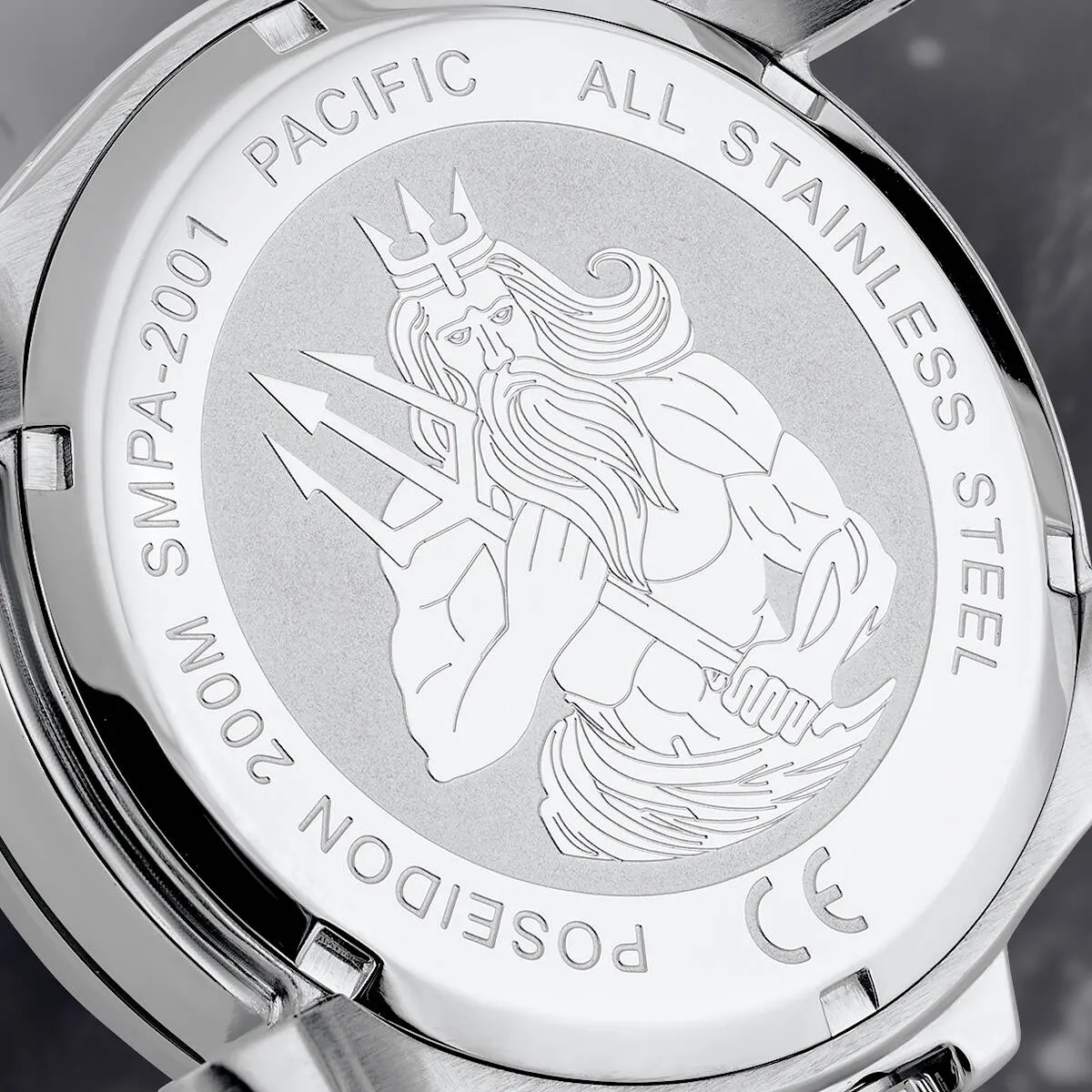 Z tyłu koperty znajduje się precyzyjny grawer przedstawiający Posejdona z trójzębem - symbol potęgi i panowania nad żywiołami. Ten unikatowy detal podkreśla, że zegarek został stworzony dla mężczyzn, którzy nie boją się wyzwań i idą przez życie z pewnością siebie.
