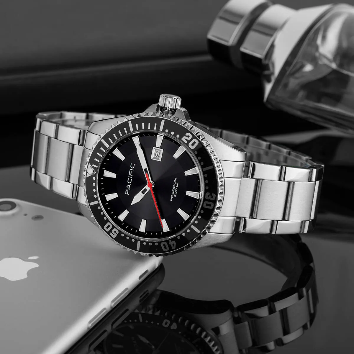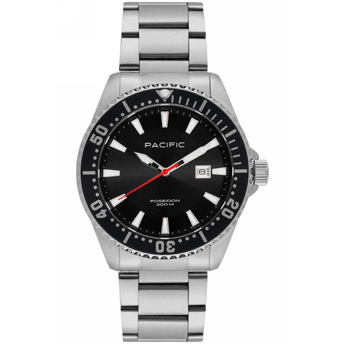 Pacific zadbał o to, by Poseidon był nie tylko solidny, ale też wygodny. Stalowa bransoletka jest trwała. Istnieje możliwość skrócenia jej i dopasowania do nadgarstka.