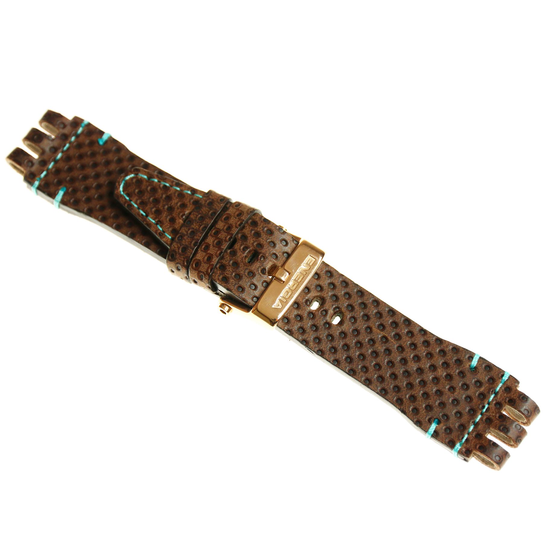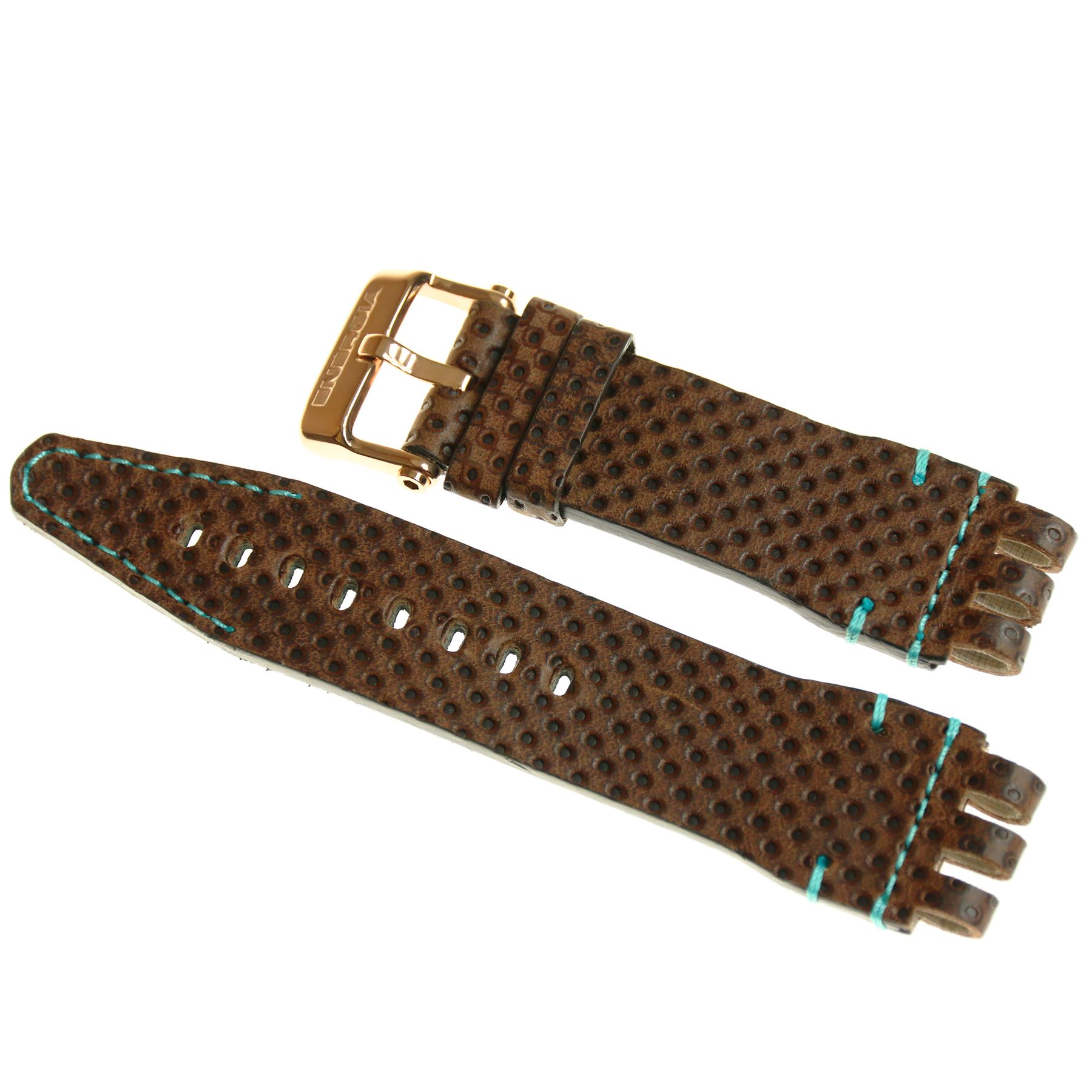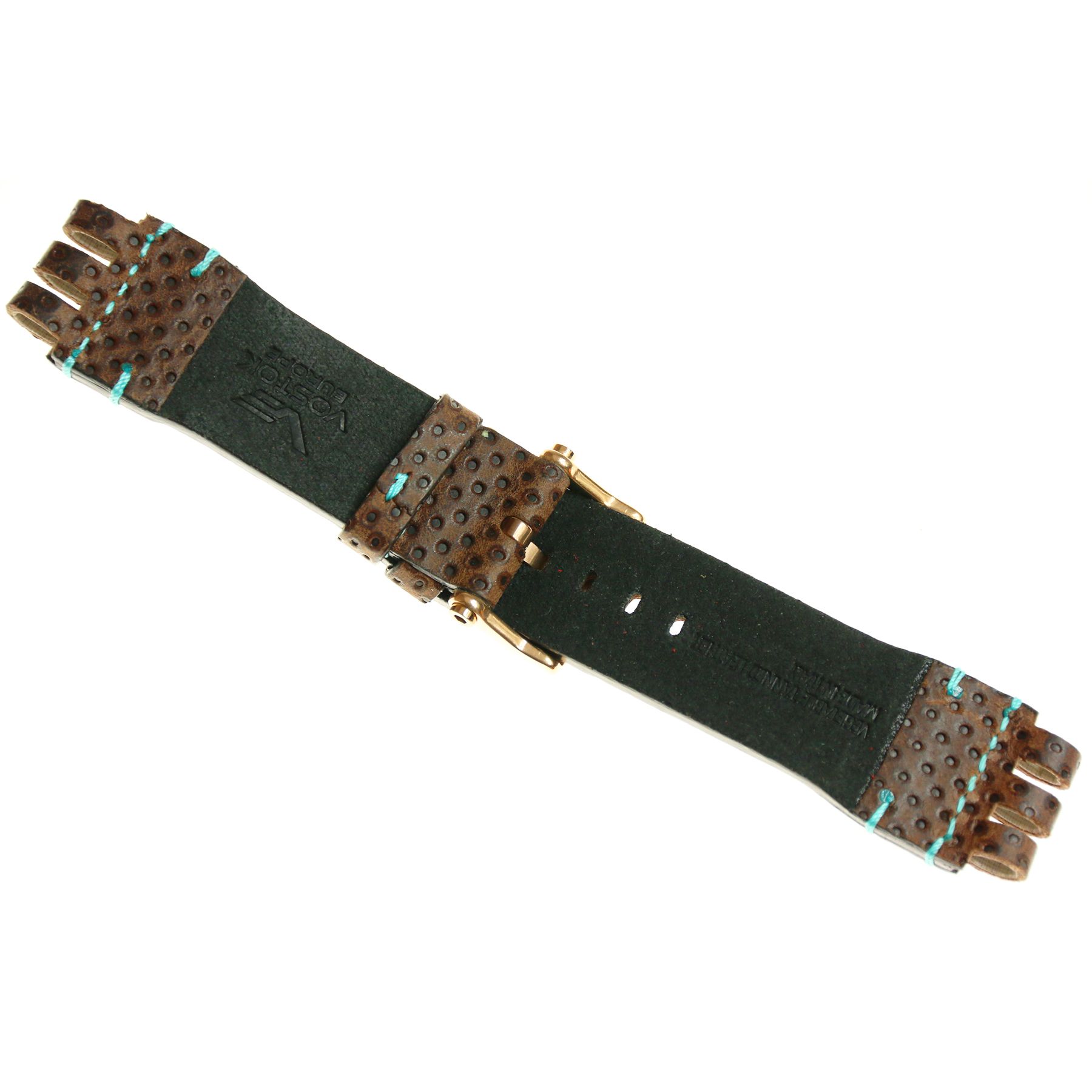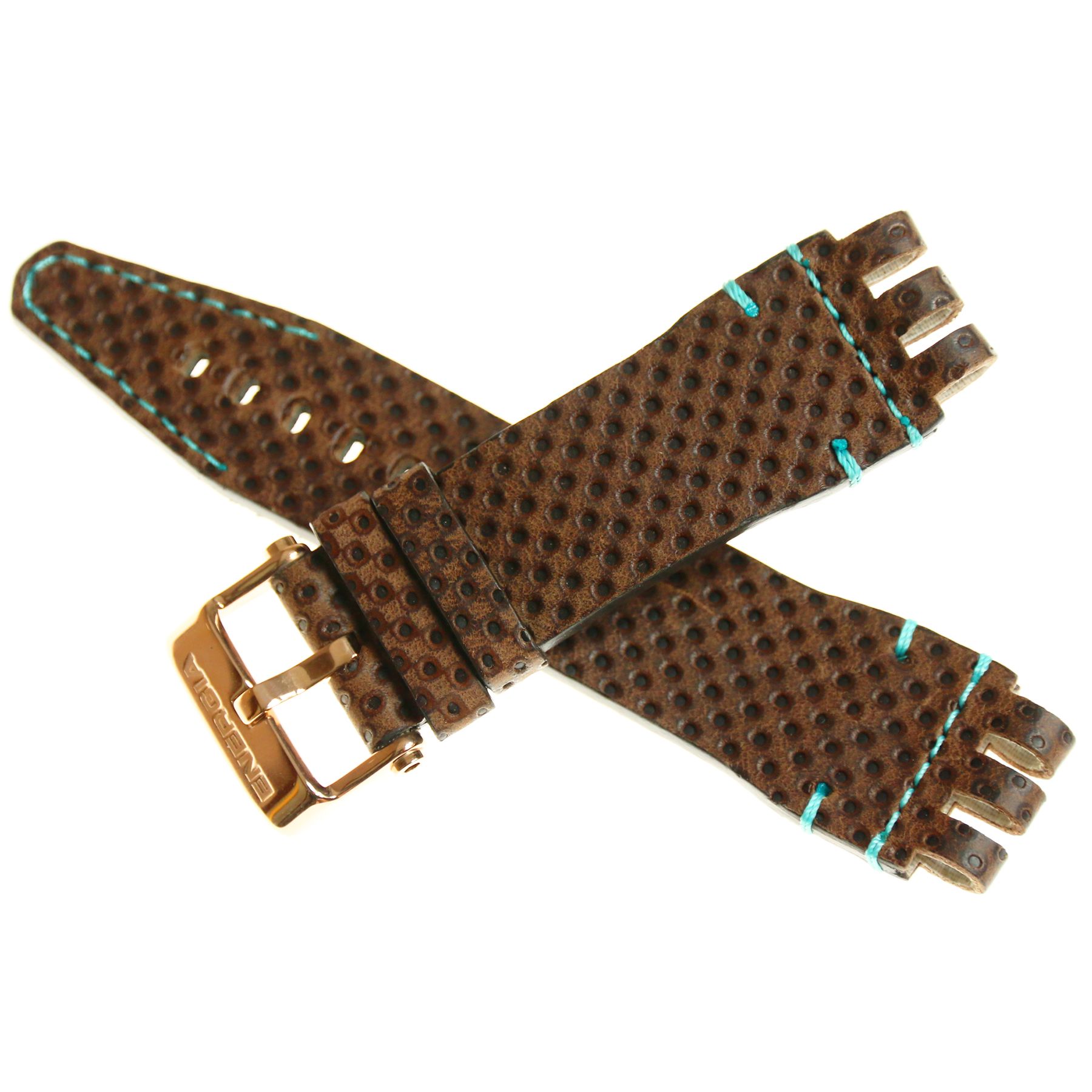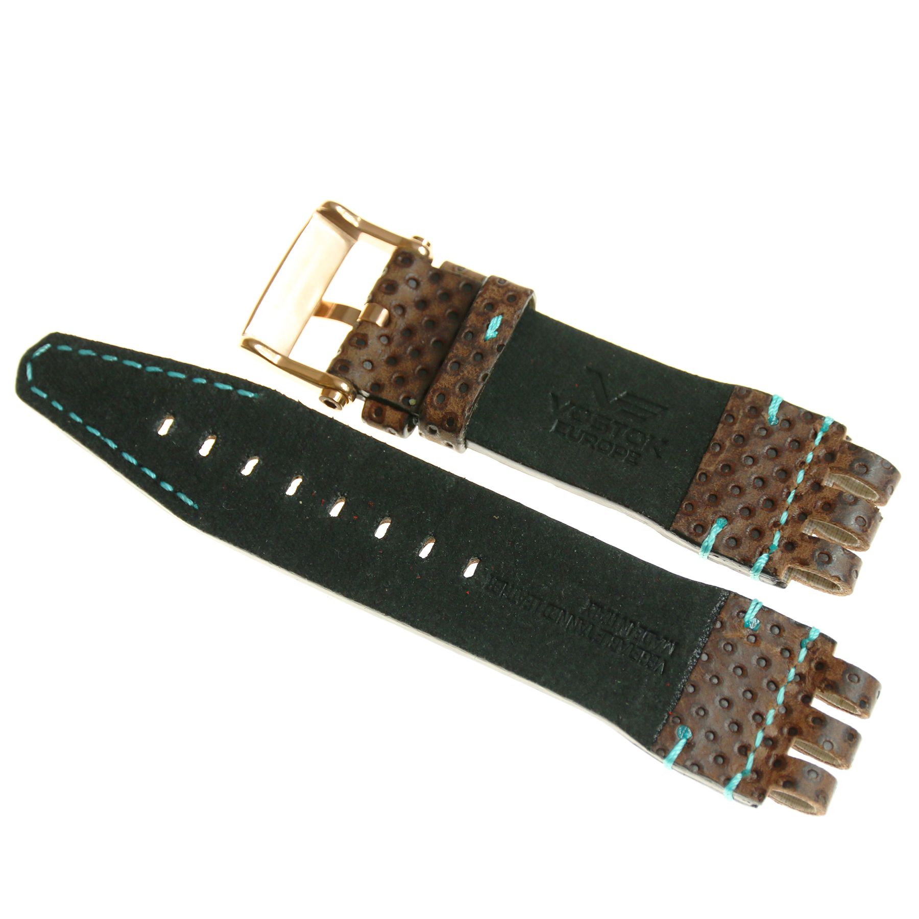 Oryginalny pasek skórzany w kolorze brązu kolorze, dziurkowany z  ozdobnym przeszyciem turkusową nicią, do zegarka Vostok Europe. Przeznaczony do kolekcji Energia, charakteryzuje się najwyższej jakości wykonaniem, oryginalną kolorystyką i pełną kompatybilnością z modelami z tej linii.