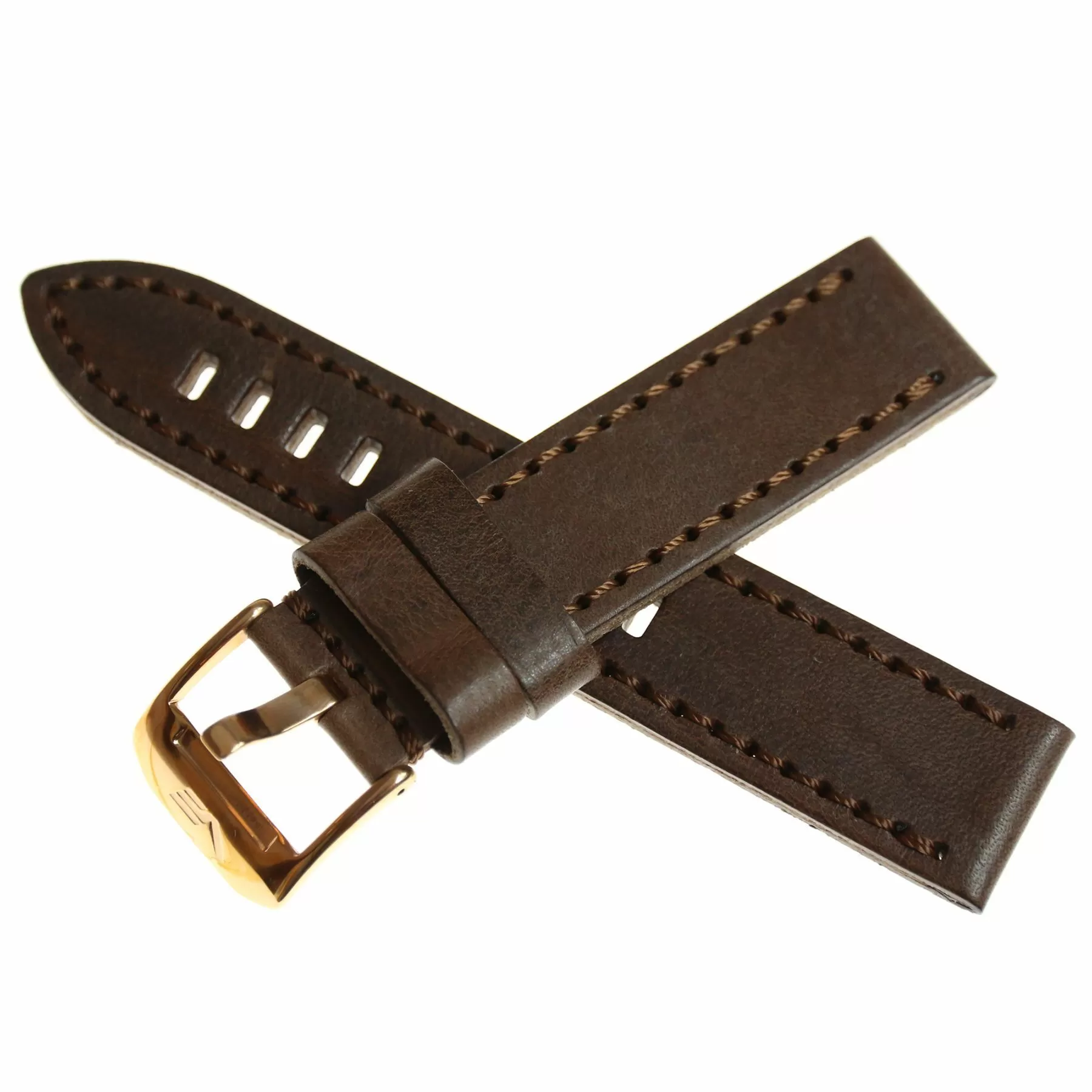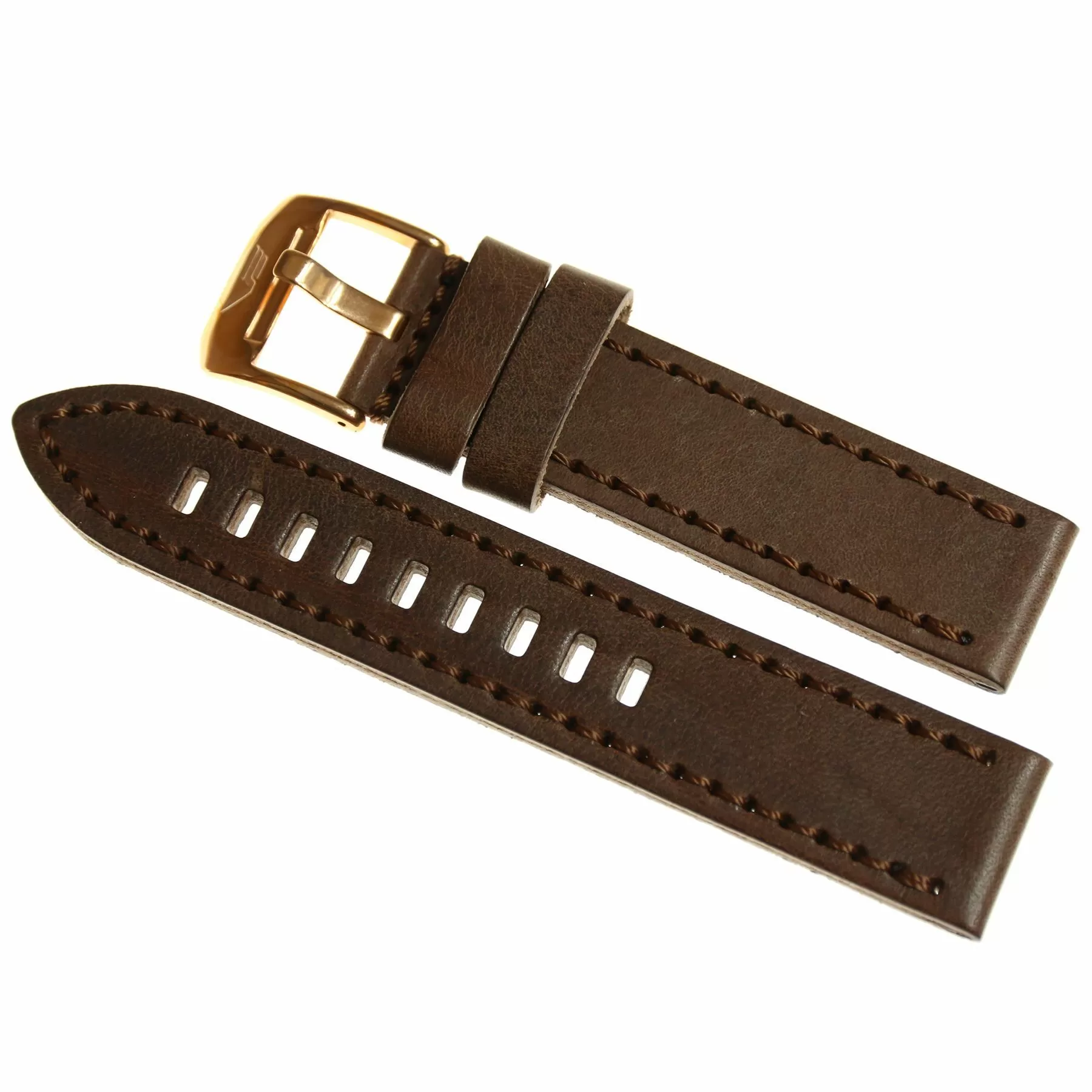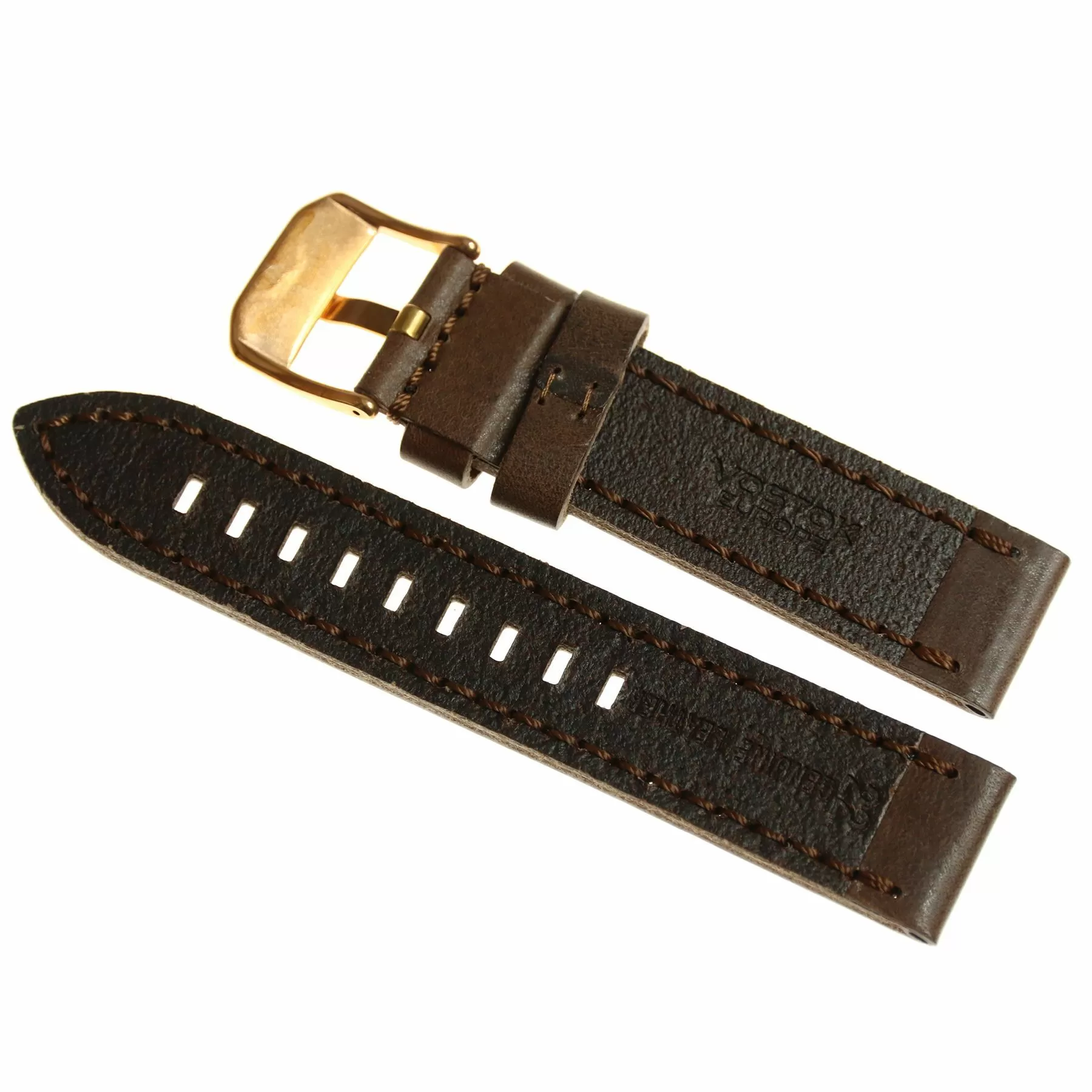 Pasek do zegarka Vostok Europe Pasek Almaz - Skóra (B262) brązowy klamra różowe złoto