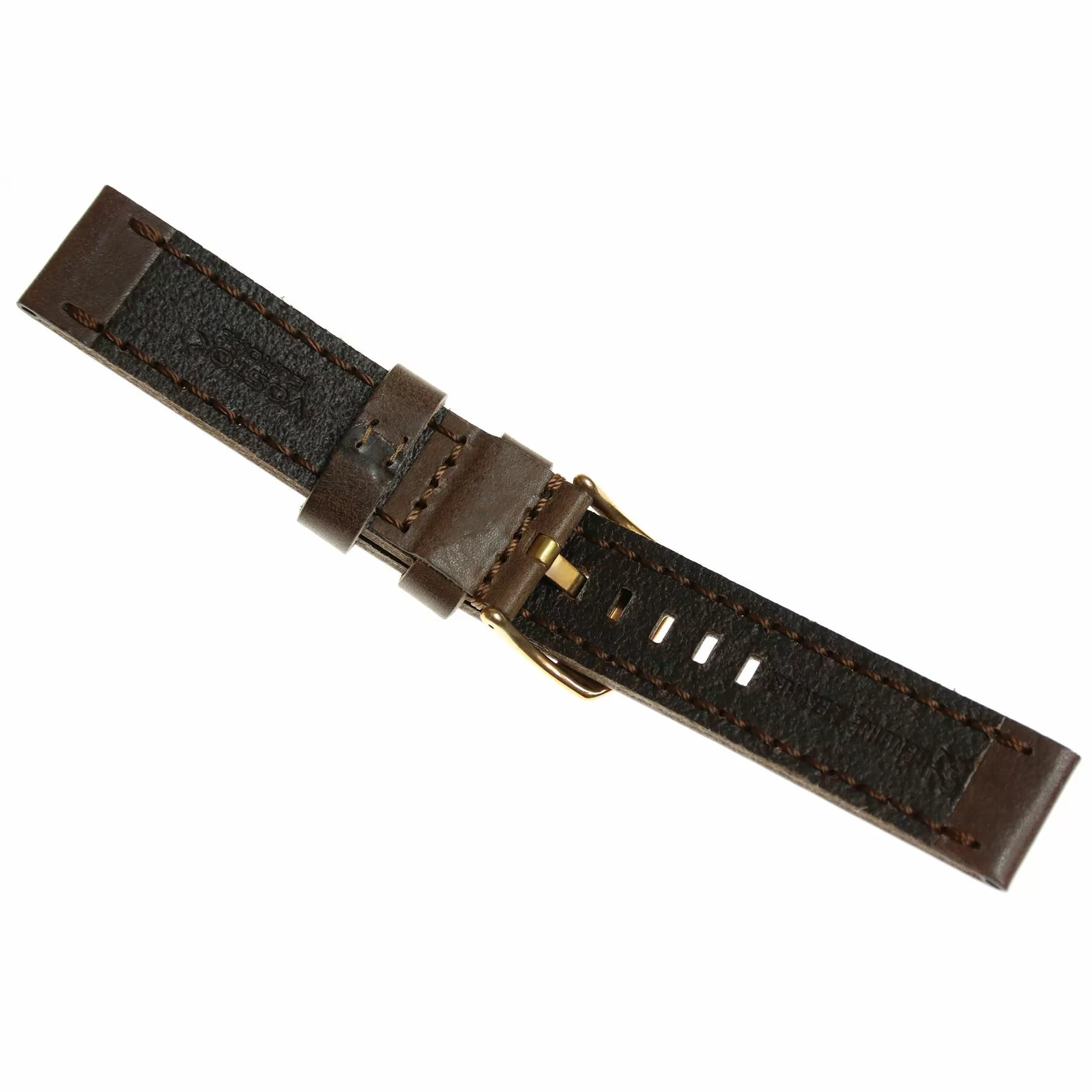 Pasek Vostok Europe Almaz skórzany brązowy z błyszczącą klamrą w kolorze złotym w odcieniu różowym