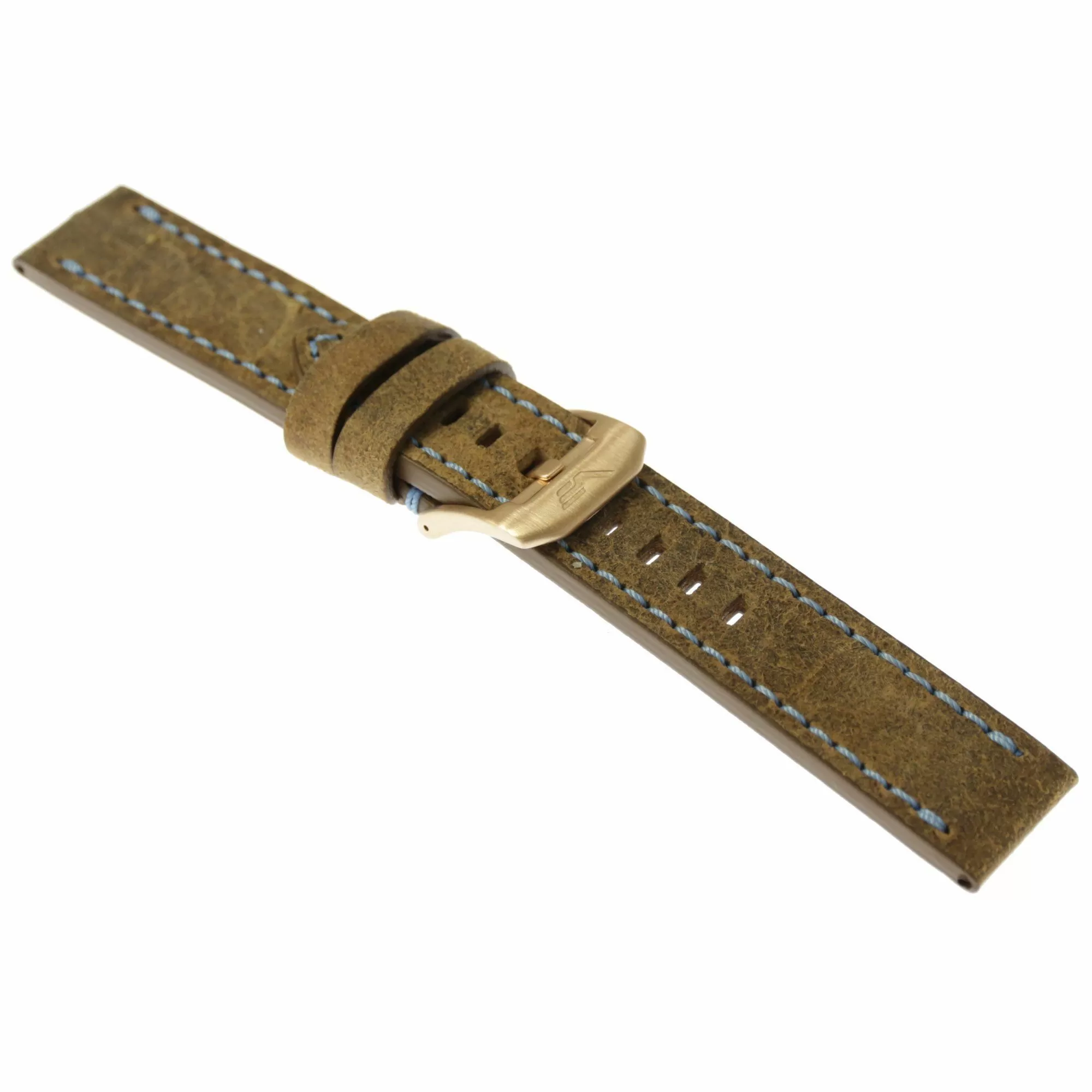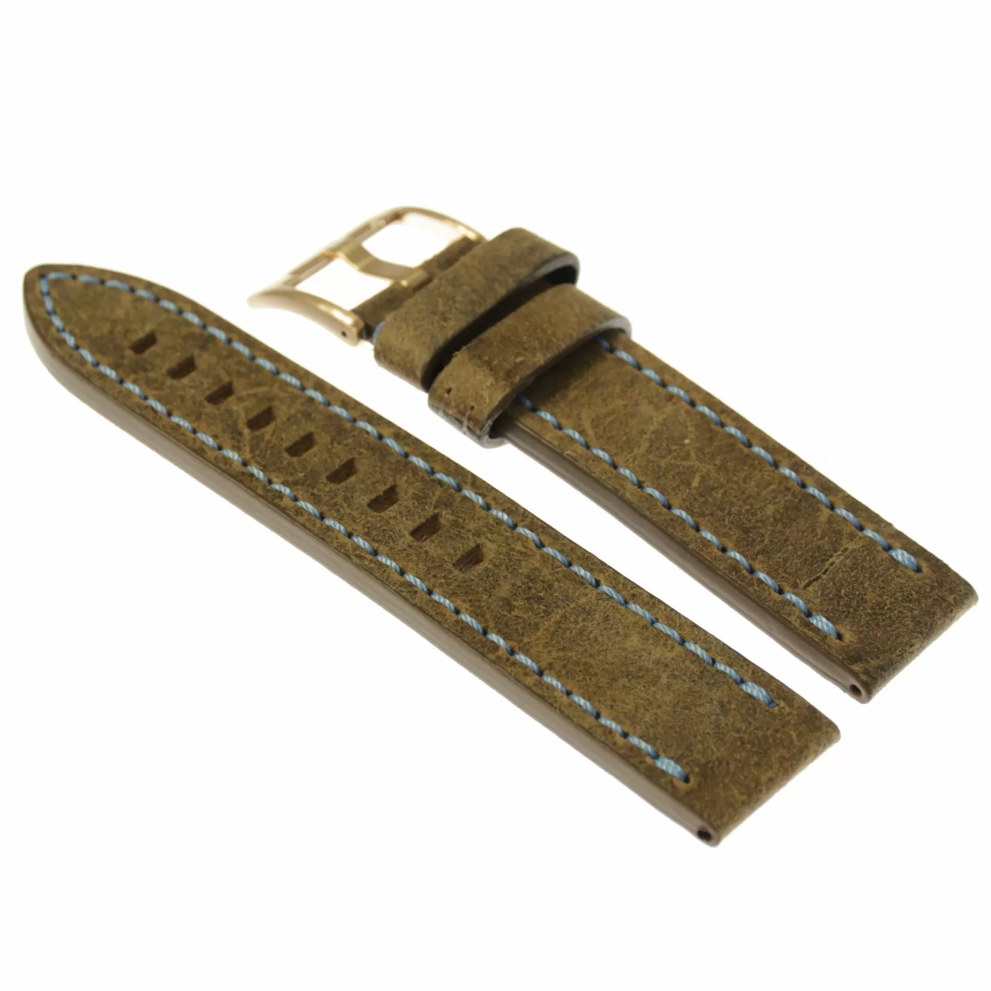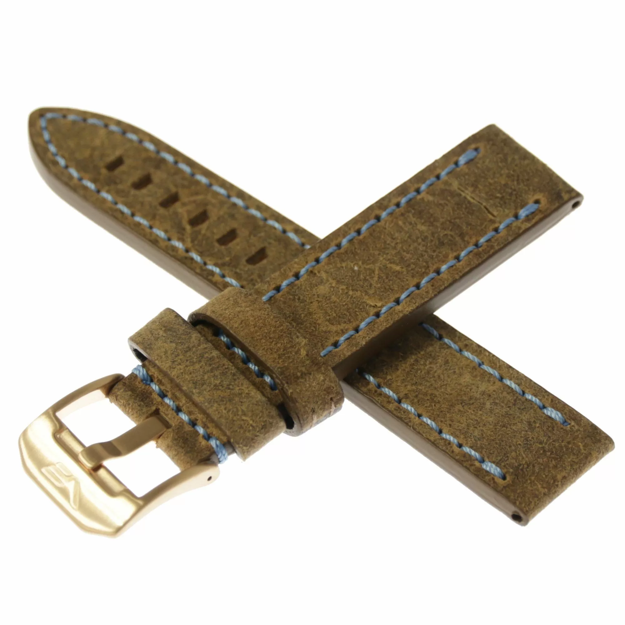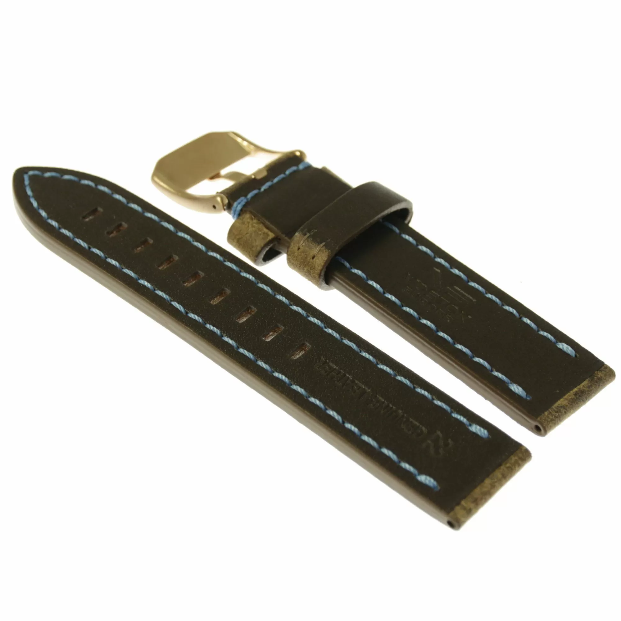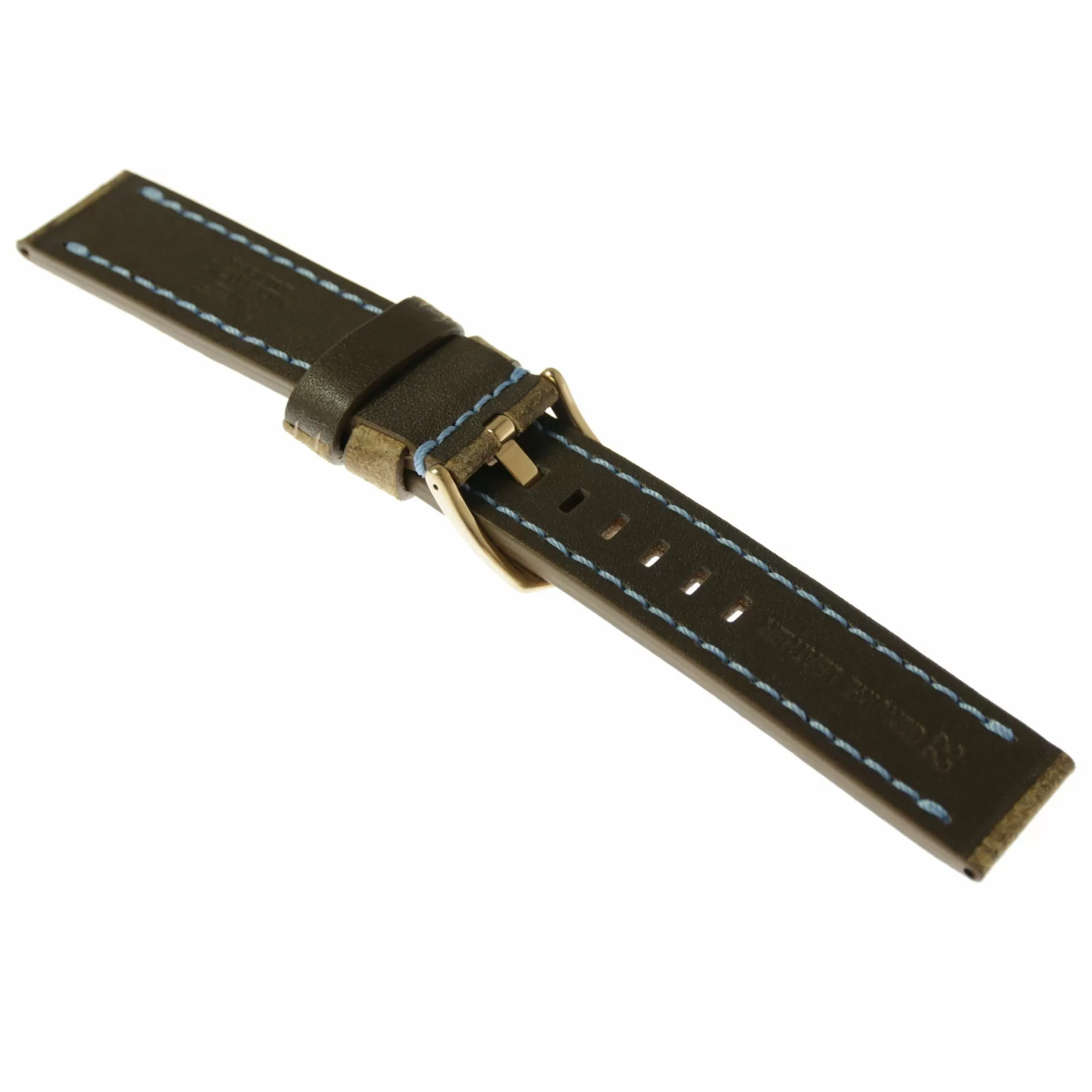 Pasek do zegarka Vostok Europe Pasek Almaz - Skóra (O266) brązowy z niebieskim przeszyciem różowa klamra